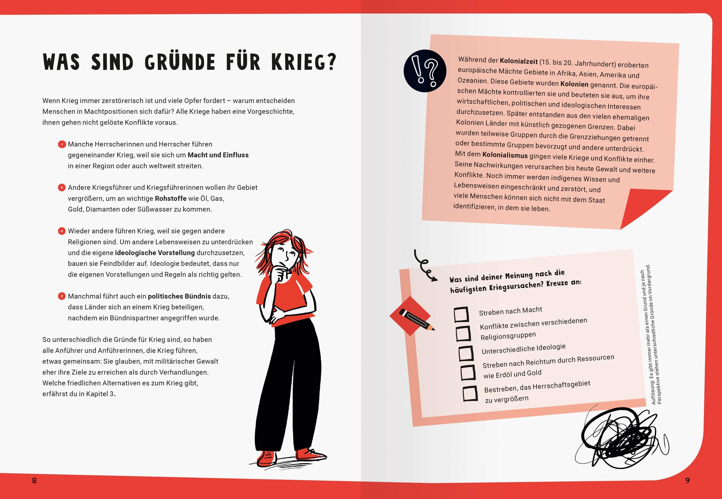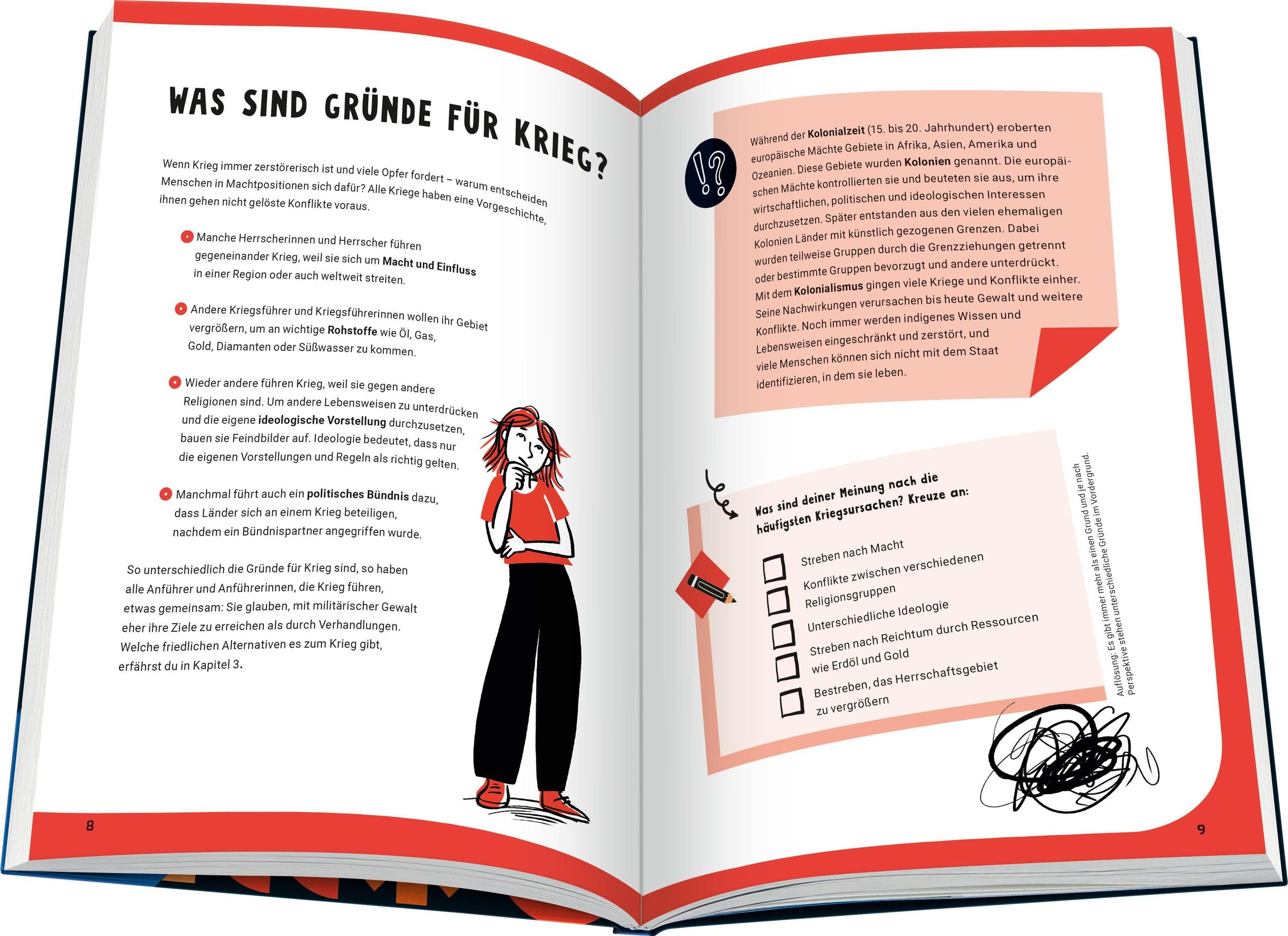 Warum eskalieren Konflikte? Ab wann gilt ein Konflikt als Krieg? Was bedeutet es, fliehen zu müssen? Wer Zusammenhänge verstehen und mehr über die eigenen Handlungsspielräume erfahren möchte, braucht dieses Buch. Eine friedliche Zukunft benötigt unser aller Einsatz und beginnt bei uns selbst. Im Alltag und in der Politik können Konflikte auch hilfreich sein - wenn sie richtig geführt werden. Mit vielen Übungen zum Eintragen, Tipps zum Mitmachen und Aktiv-Werden.