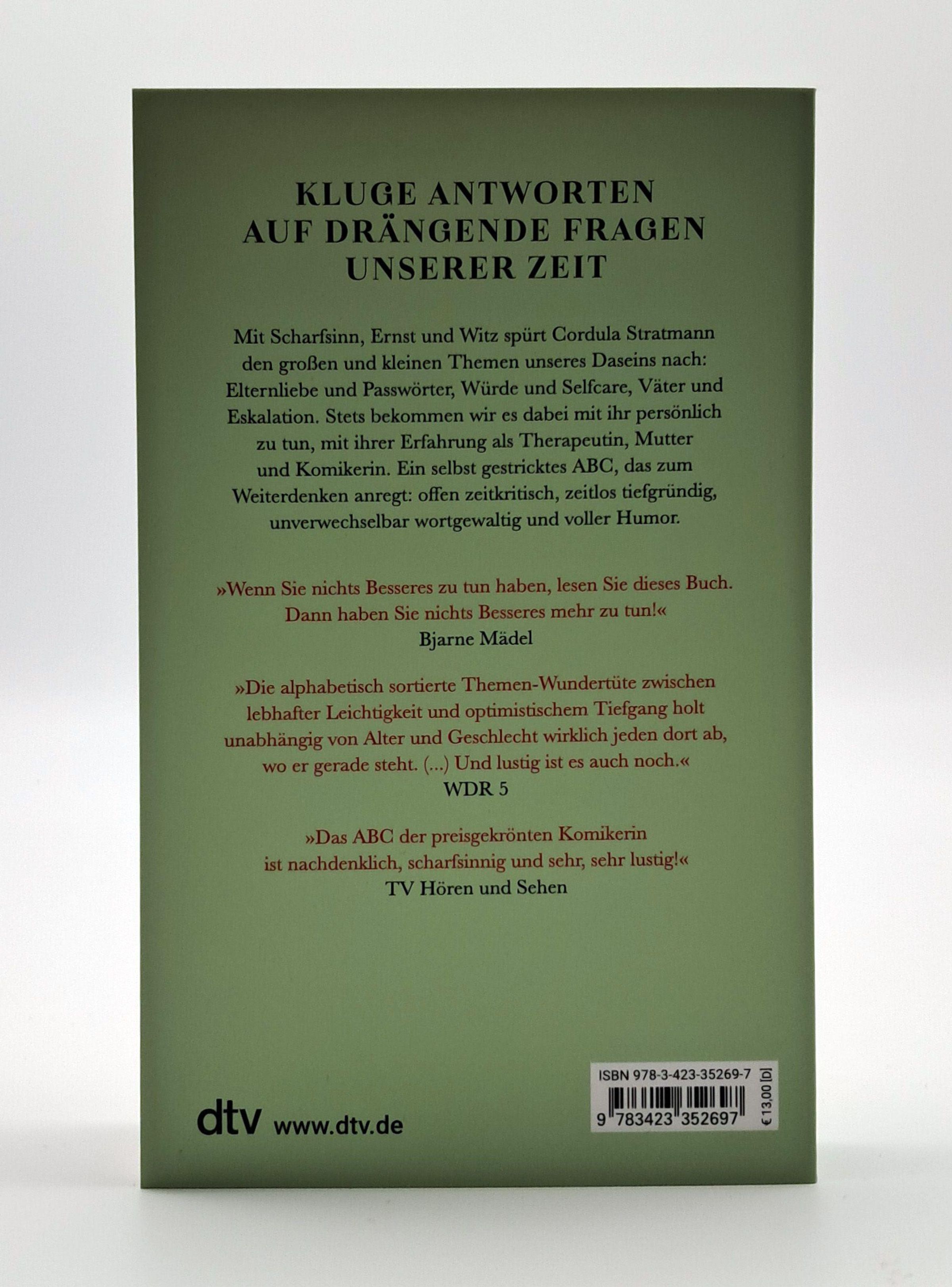Ein selbst gestricktes ABC , das alle Denk- und Lebensfreudigen herzlich zum Nachsinnen einlädt: offen zeitkritisch, zeitlos tiefgründig, unverwechselbar wortgewaltig und voller Humor.