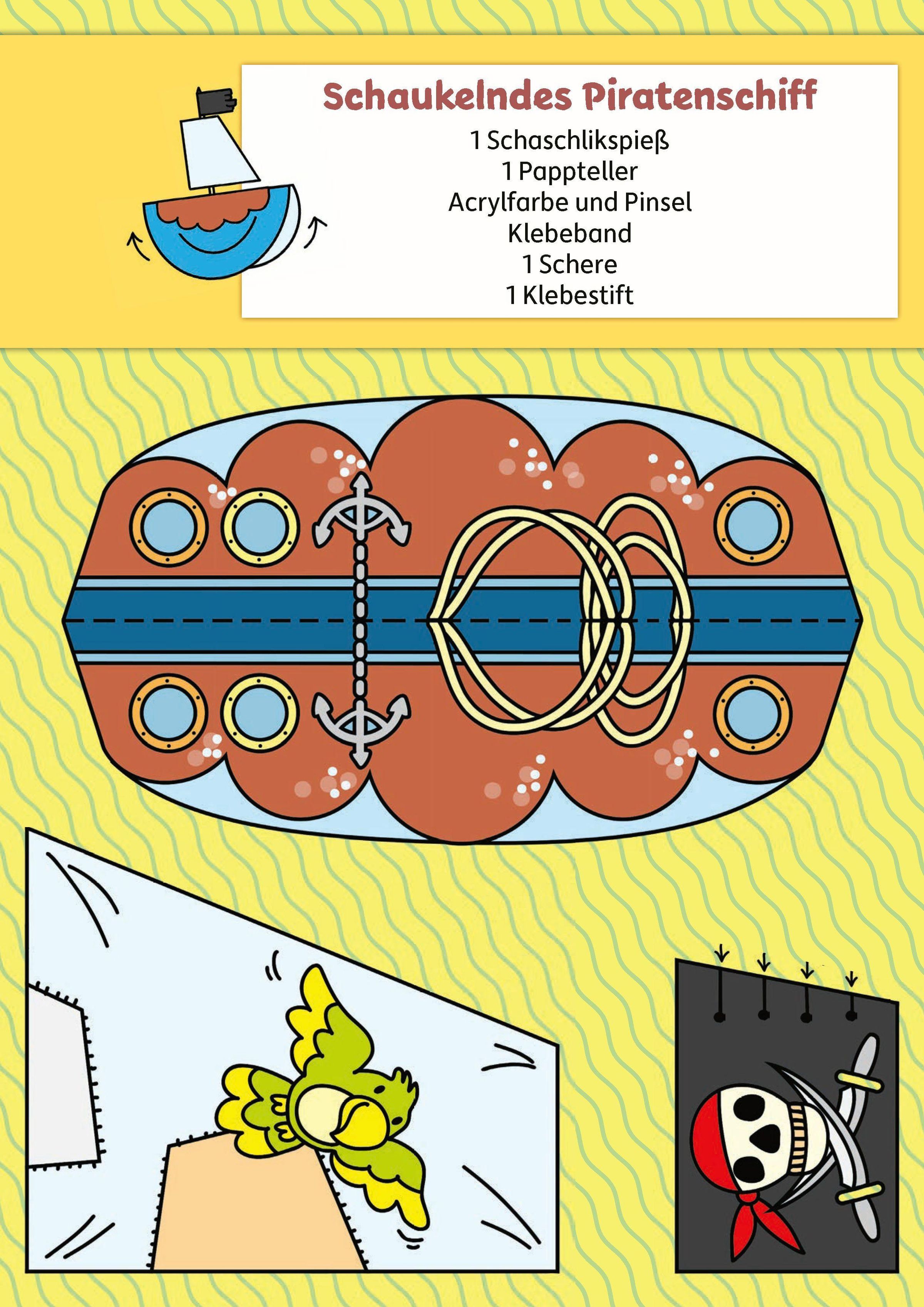 ✅ Vielseitige Basteltypen: Pappteller-Schatzinsel, schaukelndes Piratenschiff, Küchenrollen-Fernrohr, Seemonster-Handpuppe und mehr