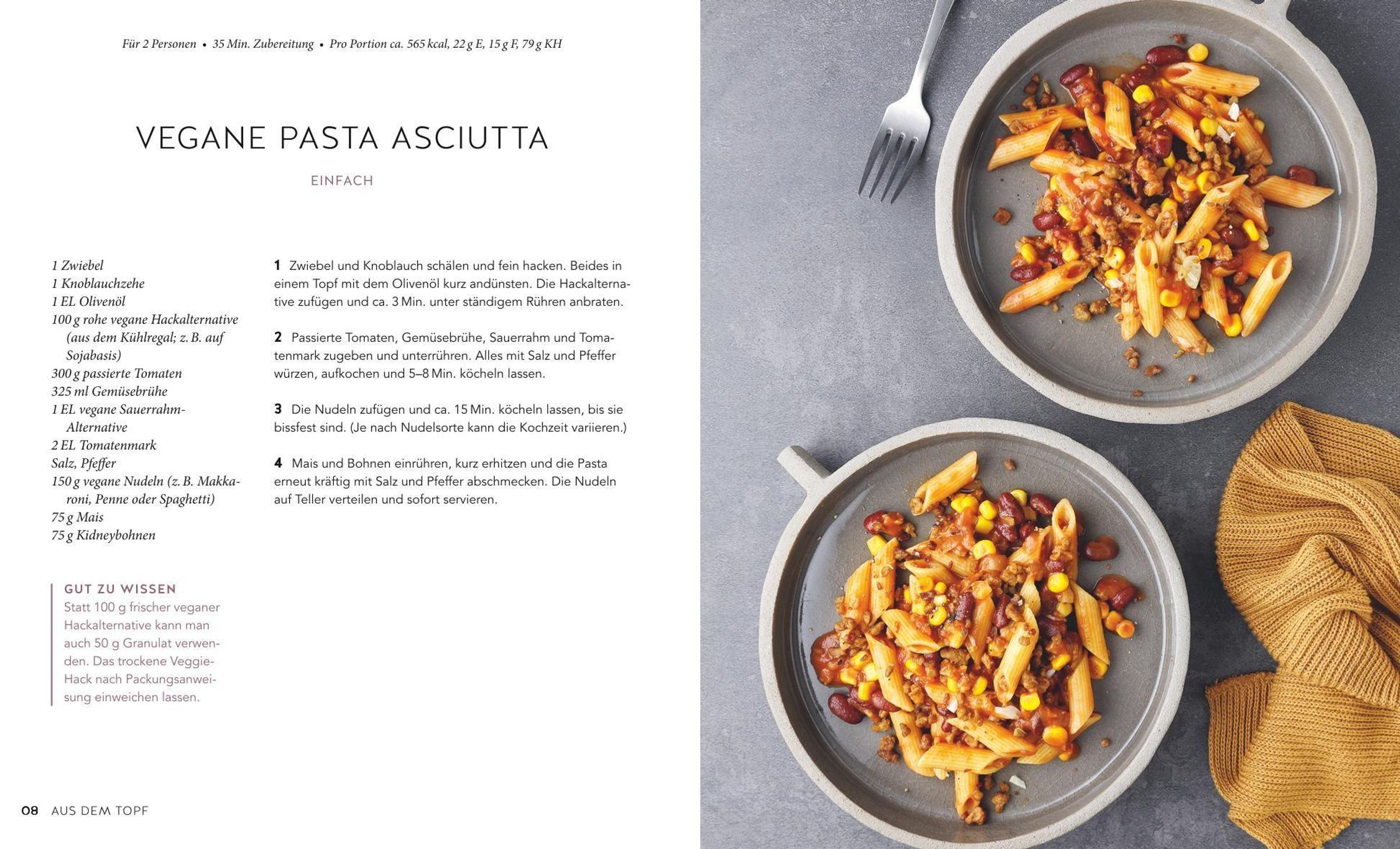 Das neue Kochbuch von GU verspricht nicht nur köstliche Rezepte, sondern ganze neue Kreationen, die immer aus einem Topf, einer Pfanne oder von einem Blech kommen. Spülarbeit, ade heißt es dann, stattdessen oft nur 20-30 Minuten Zubereitungszeit und maximal 10 Zutaten. Ganz ohne tierische Komponenten lassen sich die veganen Gerichte kinderleicht kochen und für die ganze Familie servieren.