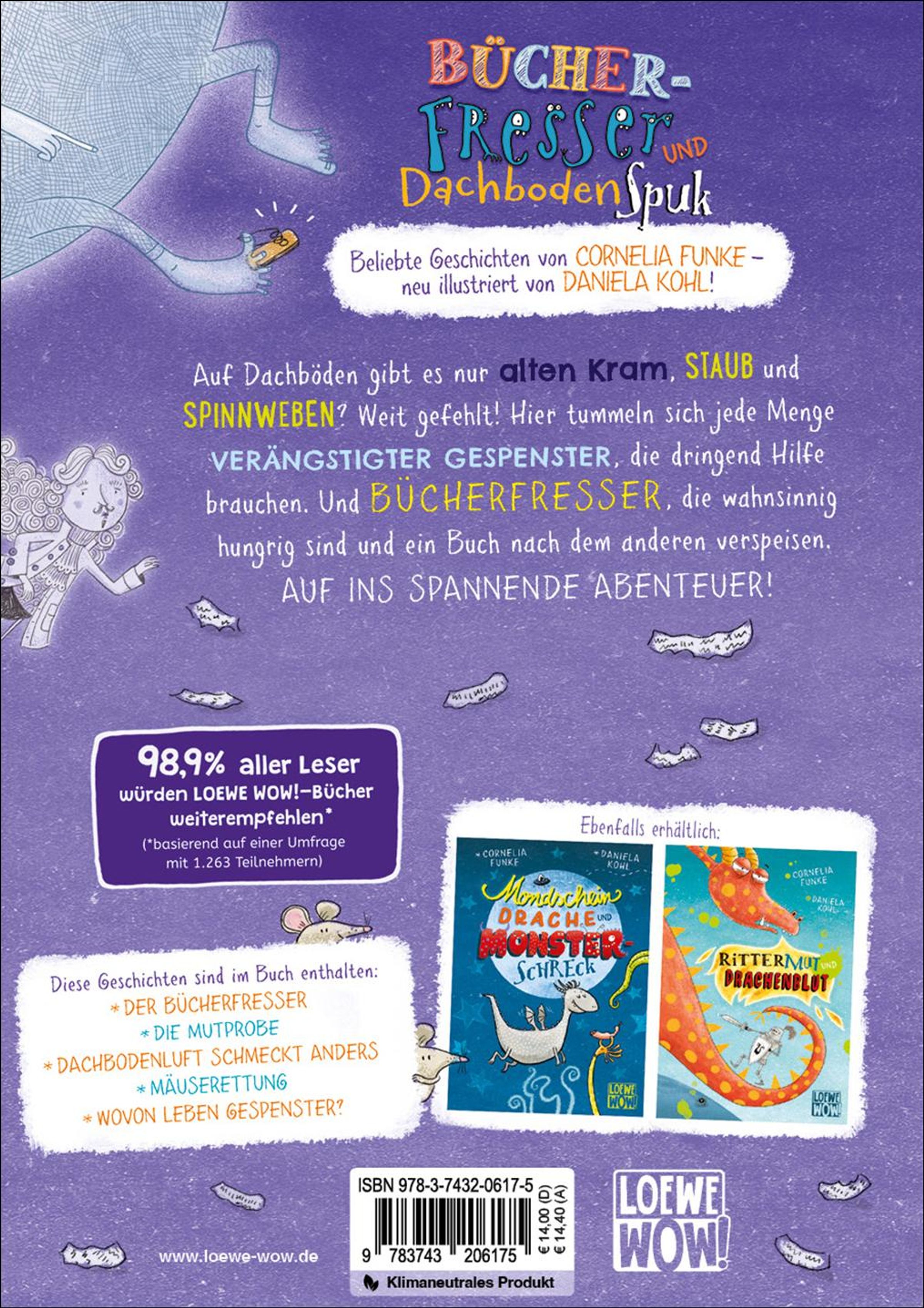 Auf Dachböden gibt es nur alten Kram, Staub und Spinnweben? Weit gefehlt! Hier tummeln sich jede Menge verängstigter Gespenster, die dringend Hilfe brauchen. Und Bücherfresser, die wahnsinnig hungrig sind und ein Buch nach dem anderen verspeisen. Auf ins spannende Abenteuer!