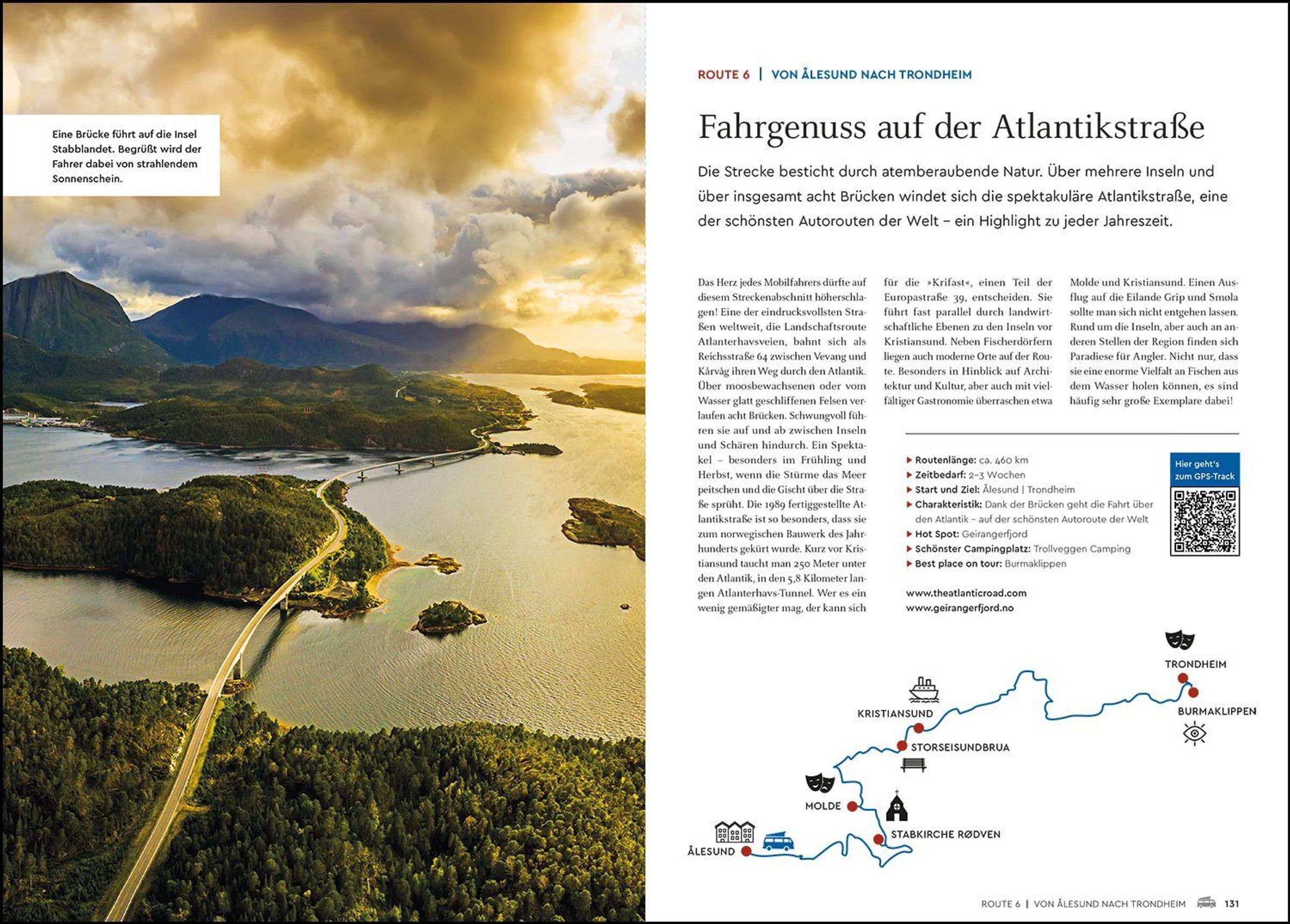 Das KUNTH Reisebuch "Mit dem Wohnmobil durch Norwegen" ist wie ein Kompass für alle, die den Norden im eigenen Rhythmus erkunden möchten, mit dem Wohnmobil als Zuhause auf Zeit. Es entführt in eine Welt unberührter Natur und mystischer Landschaften, aber auch in trendige Städte und zu Welterbestätten der Kultur. Die Routen entdecken majestätische Fjorde, endlose Wälder, verträumte Fischerdörfer und die malerische Inselwelt der Lofoten. Zur idealen Vorbereitung von Reisen in das Land der Mitternachtssonne und Polarlichter dienen detaillierte Routenkarten und der integrierte Reiseatlas sowie die übersichtlichen Etappenbeschreibungen. Ergänzt wird das Reisebuch durch zahlreiche Stellplatzempfehlungen und Tipps für lohnenswerte Ausflüge entlang der Strecke.