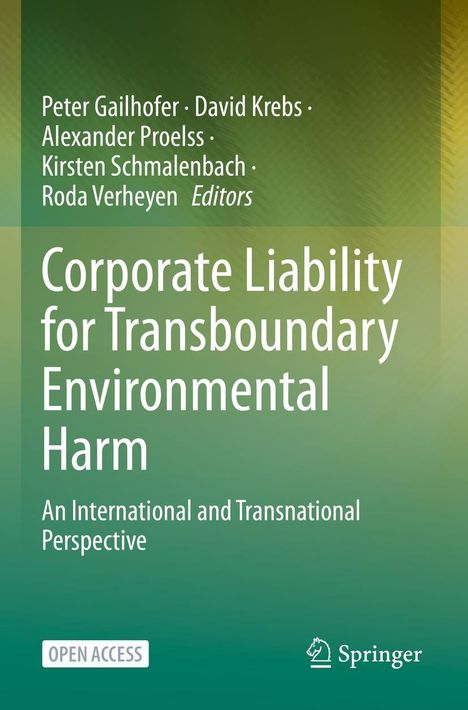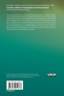 - Part I International Perspectives of Corporate Environmental Liability. - 1. Introduction. - 2. Functions and Objectives of Corporate Liability for Transboundary Environmental Harm. - 3. States Responsibility and Liability for Transboundary Environmental Harm. - 4. Liability of Private Actors in International Law. - 5. International Standards for National Environmental Liability Regimes. - Part II Tackling Transboundary Environmental Damage in the National Arena. - 6. National Civil Liability and Transboundary Environmental Damage. - 7. Environmental Due Diligence Obligations in Home State Law with Regard to Transnational Value Chains. - Part III Key Sectors and Synthesis. - 8. Climate Change Litigation: A Reference Area for Liability. - 9. Geoengineering: Methods, Associated Risks and International Liability. - 10. Synthesis. Part IV Annex: Selected Environment Treaties with Liability Elements. - 11. Convention on International Liability for Damage Caused by Space Objects. - 12. Liability Annex to the Protocol on Environmental Protection to the Antarctic Treaty. - 13. Liability Under Part XI UNCLOS (Deep Seabed Mining). - 14. The Nagoya-Kuala Lumpur Supplementary Protocol on Liability and Redress to the Cartagena Protocol on Biosafety. - 15. Protocol on Liability and Compensation for Damage Resulting from Transboundary Movements of Hazardous Wastes and Their Disposal. - 16. Paris Agreement.