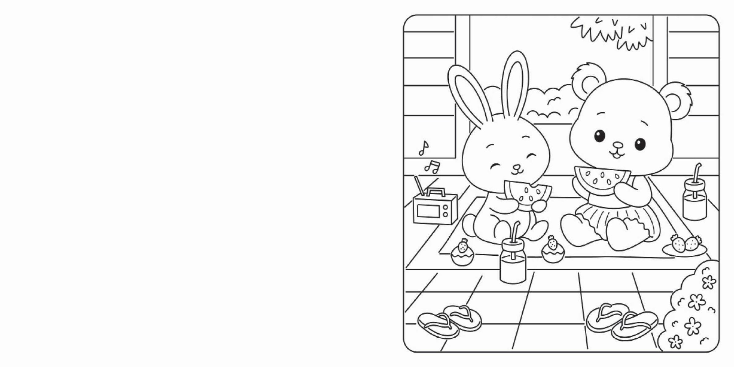 Liebevoll gestaltete Szenen laden dich ein, den Alltag hinter dir zu lassen und eine entspannte Auszeit zu genießen. Begleite die niedlichen Tiere bei einem fröhlichen Picknick, auf einem gemütlichen Campingtrip oder am knisternden Lagerfeuer und lass dich beim Ausmalen von ihrer unbeschwerten Lebensfreude verzaubern.