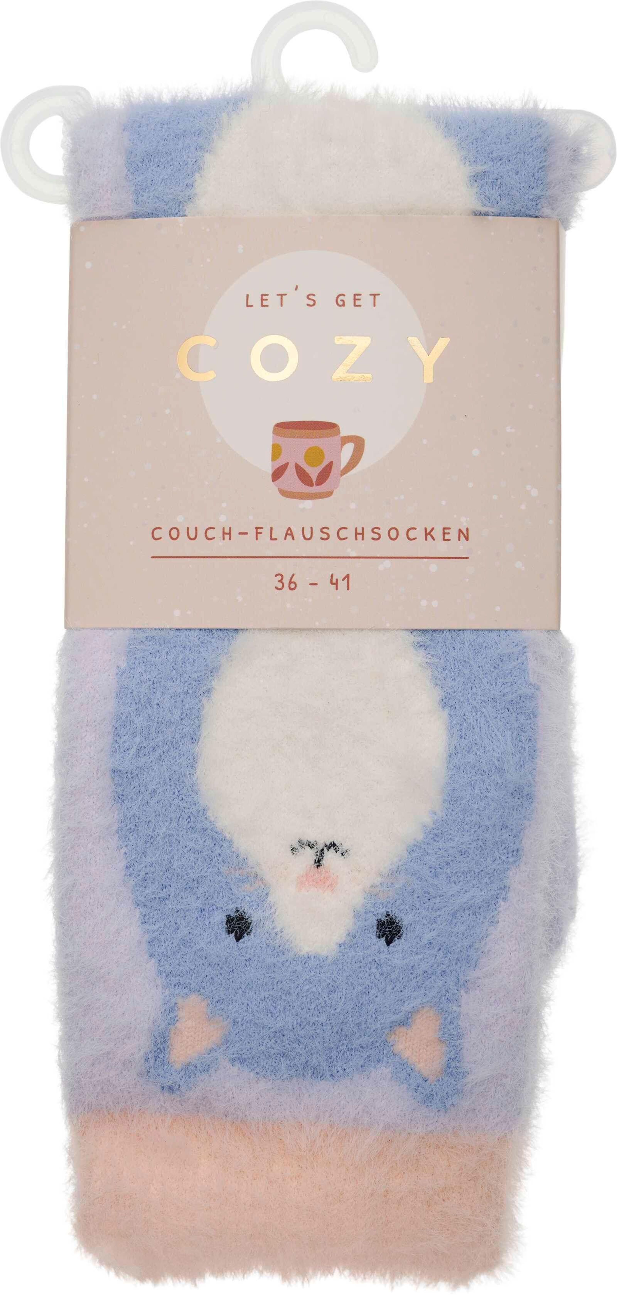 COZY Couch-Flauschsocken"Cozy Cat", blau