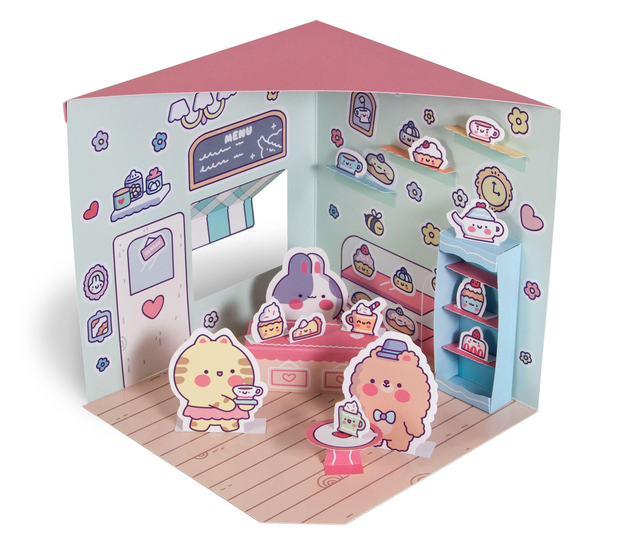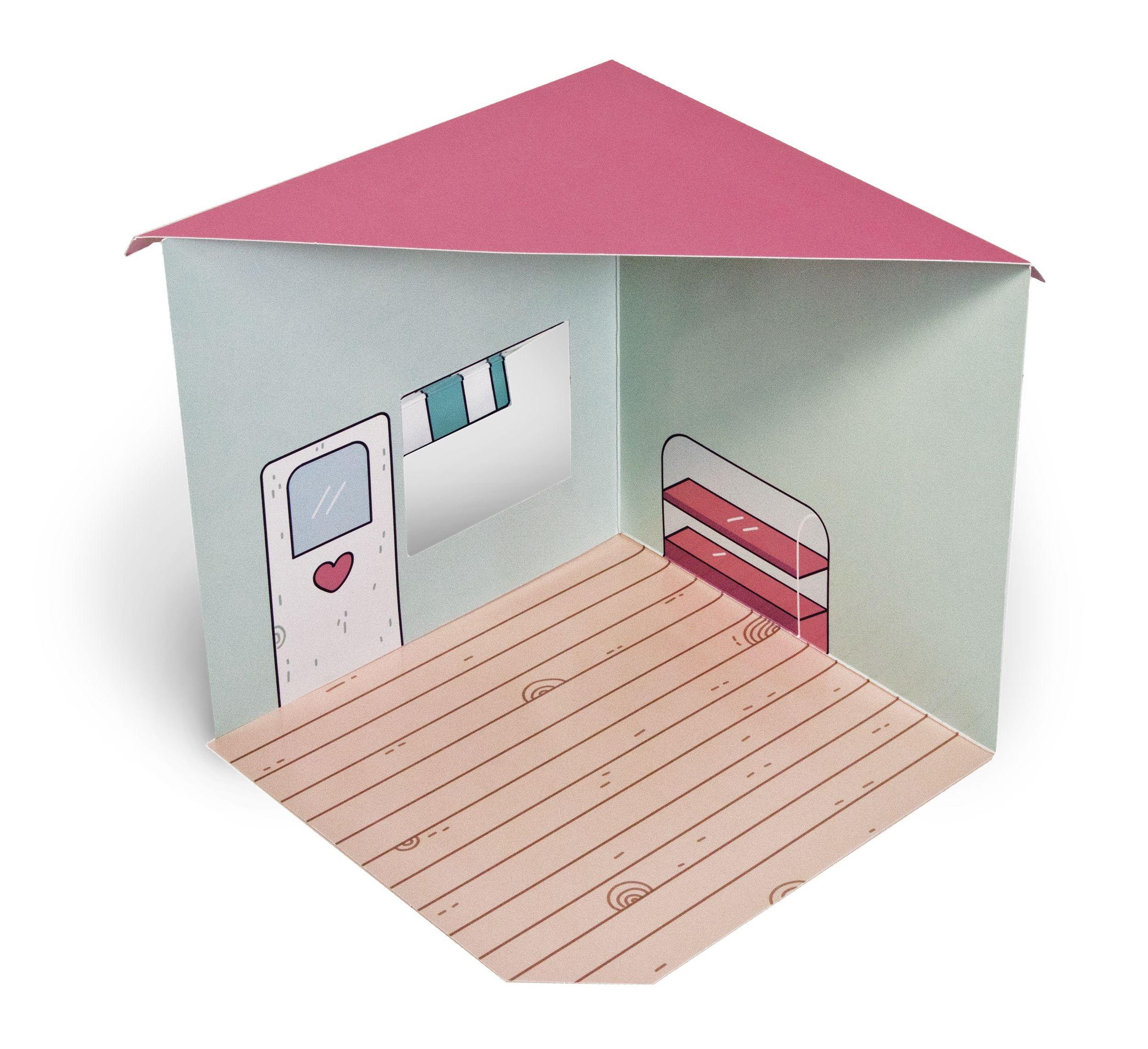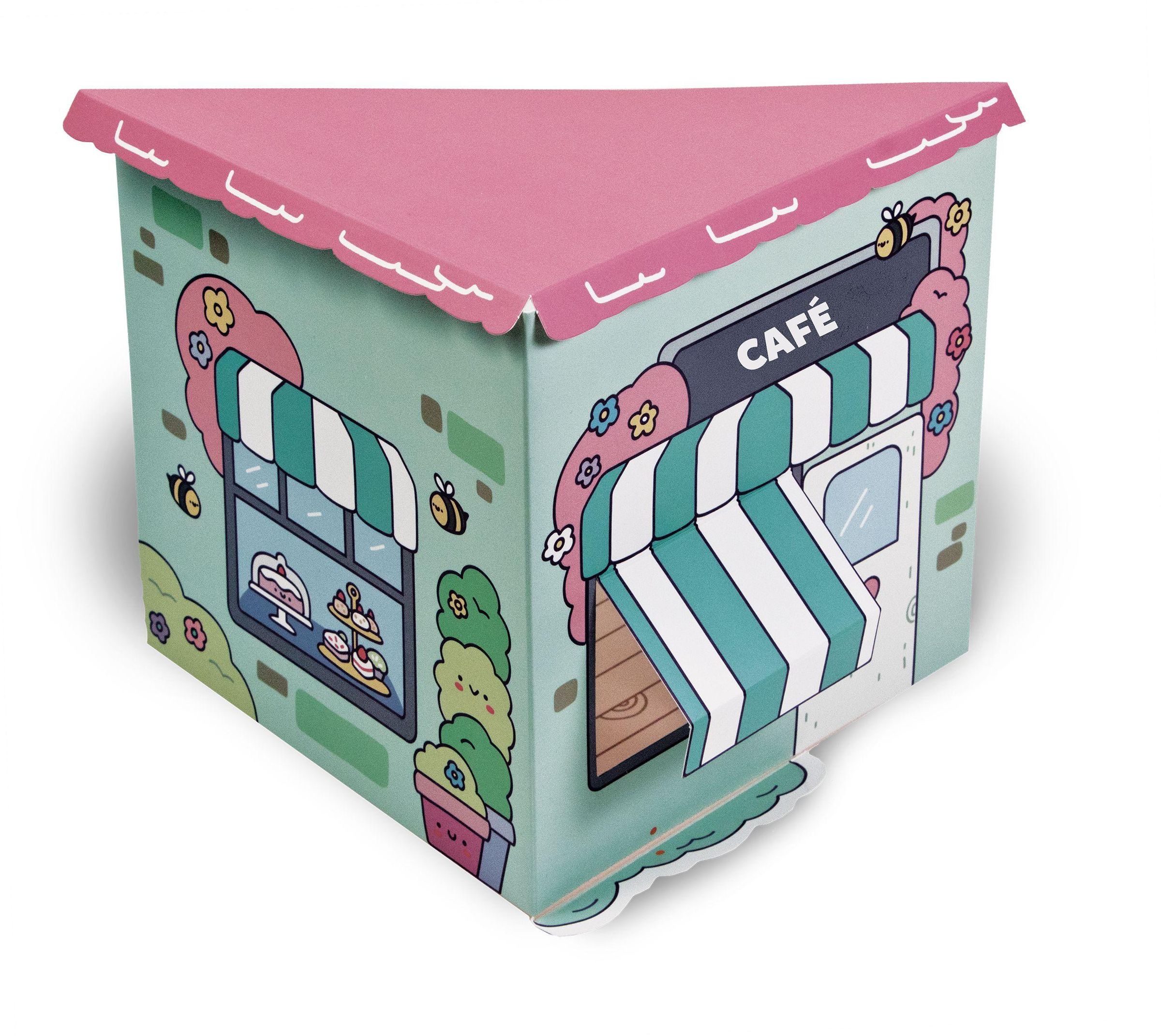 - Aufklappbarer Shop aus Pappe mit Press-Outs und Stickern in verschließbarem Umschlag