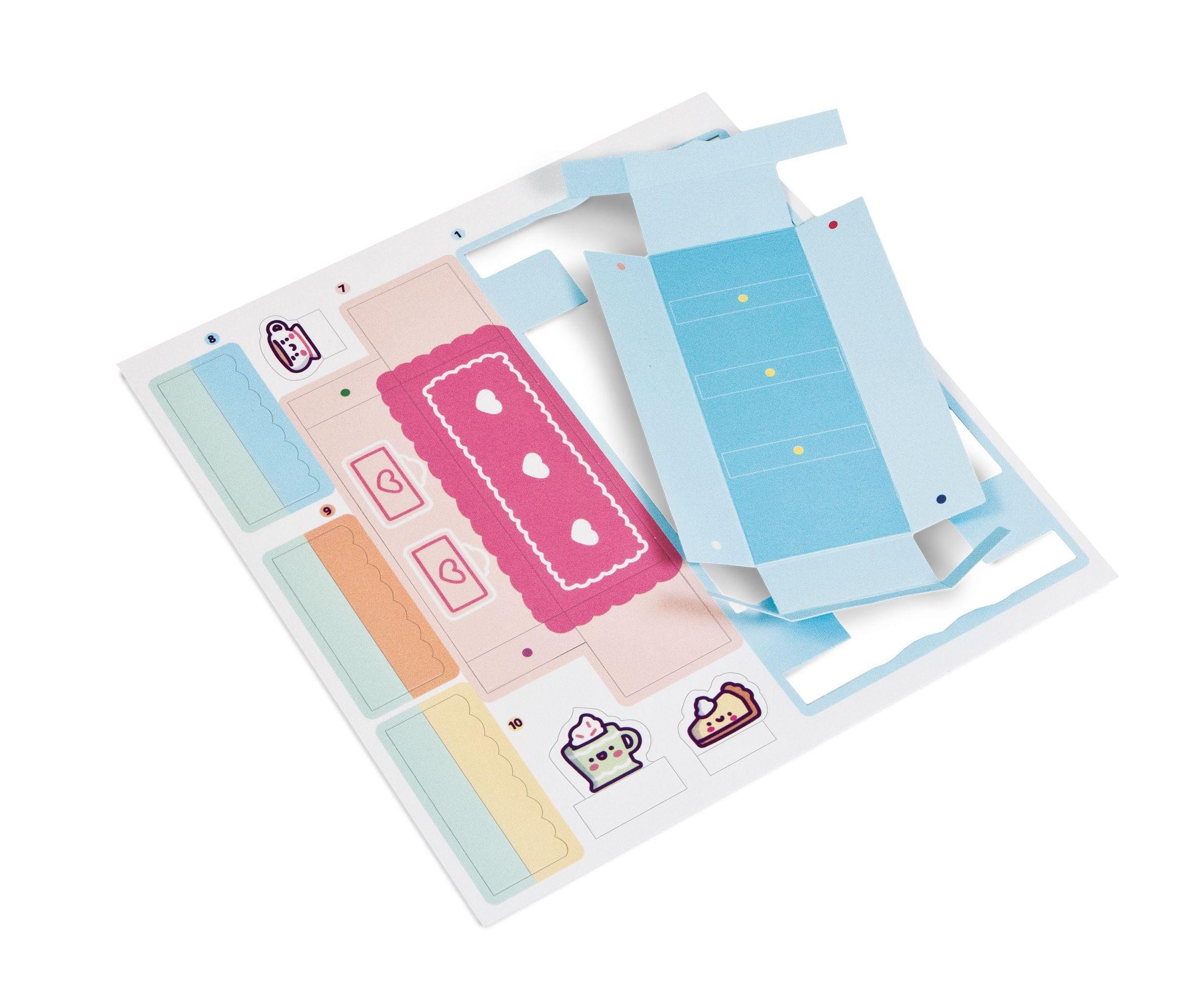 Ob beim Hörbuch hören oder Serie schauen - mit diesen Bastelsets hat man die perfekte Beschäftigung für einen gemütlichen Abend. Mit den Pastellfarben und süßen Designs gibt es den " Cozy Colouring"-Trend jetzt endlich auch zum Basteln. Mit den mehr als 20 Möbelstücken und Figuren aus Pappe und über 50 Stickern kann man seiner Kreativität freien Lauf lassen und einen zuckersüßen Süßigkeitenladen einrichten.