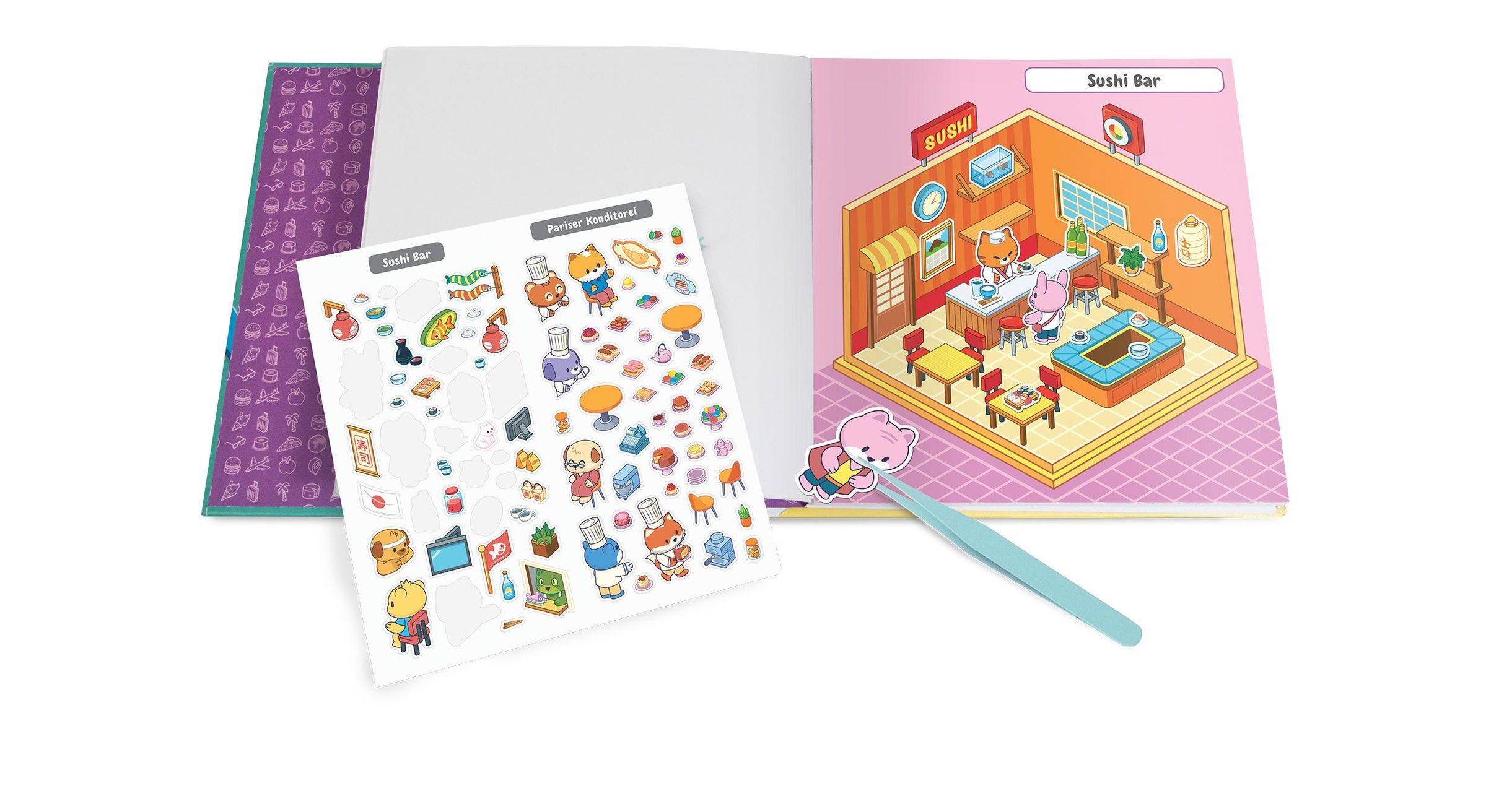 - Set mit über 150 Stickern auf 3 zusätzlichen Seiten. Mit Pinzette aus Metall in integrierter Pappschachtel