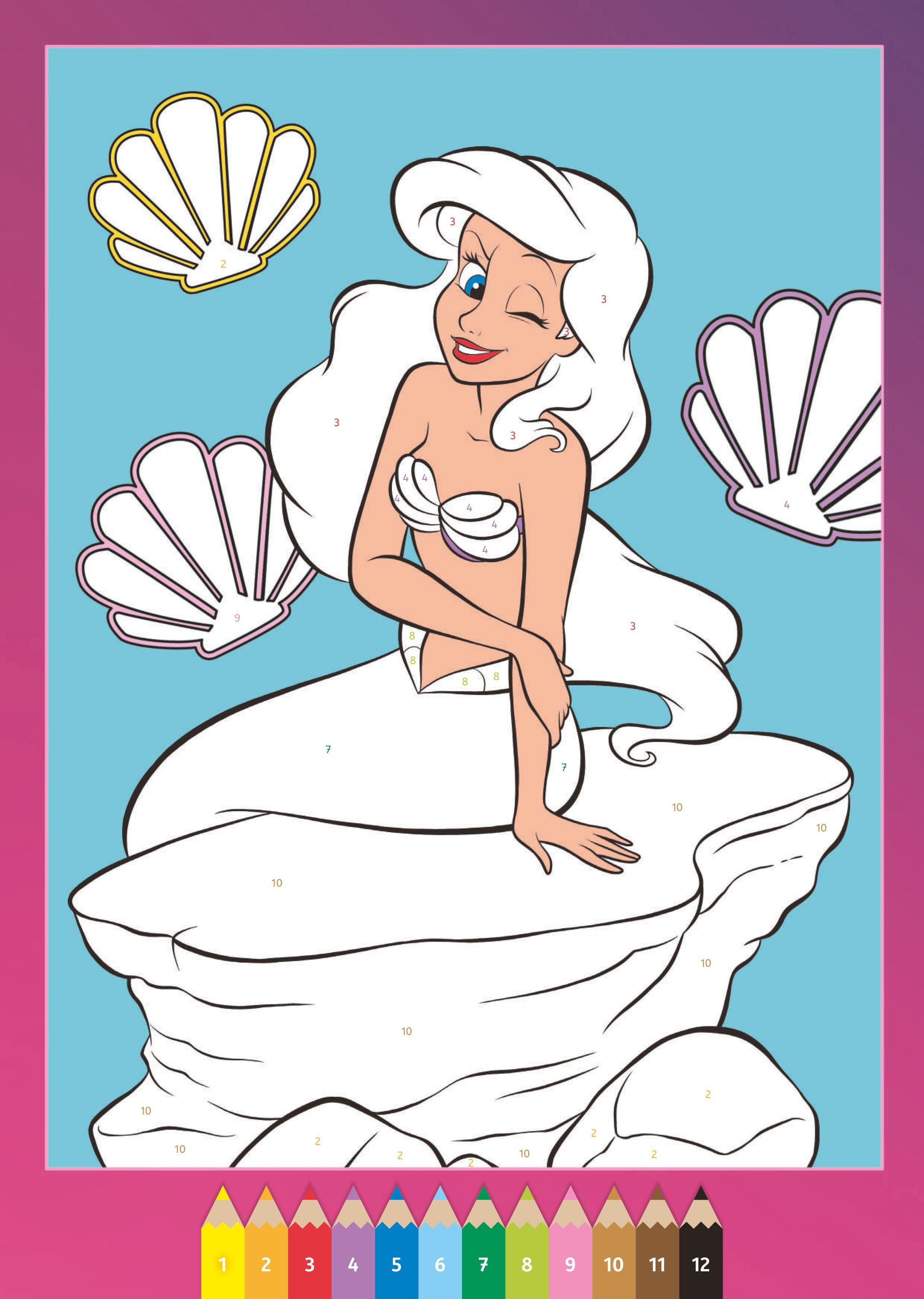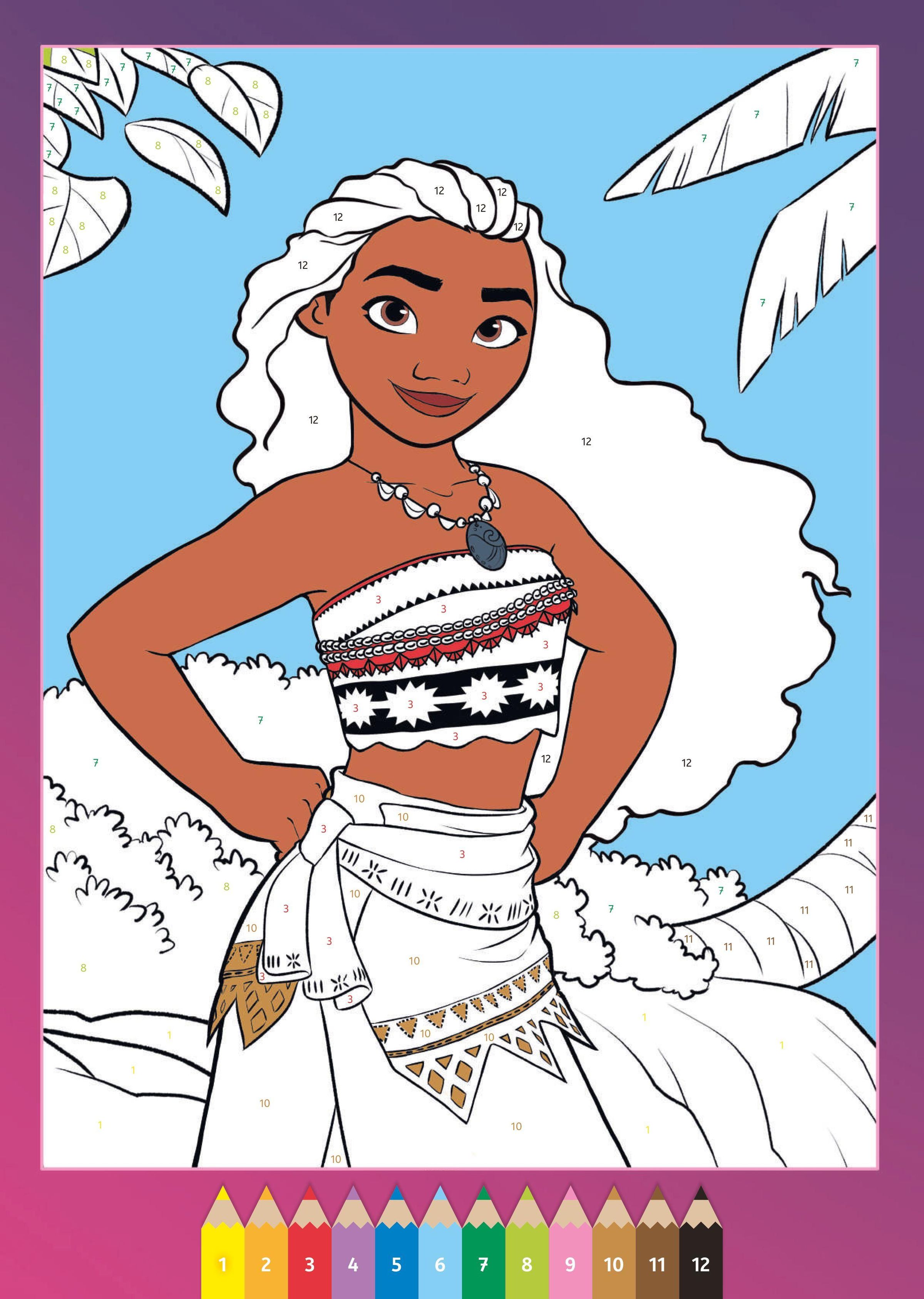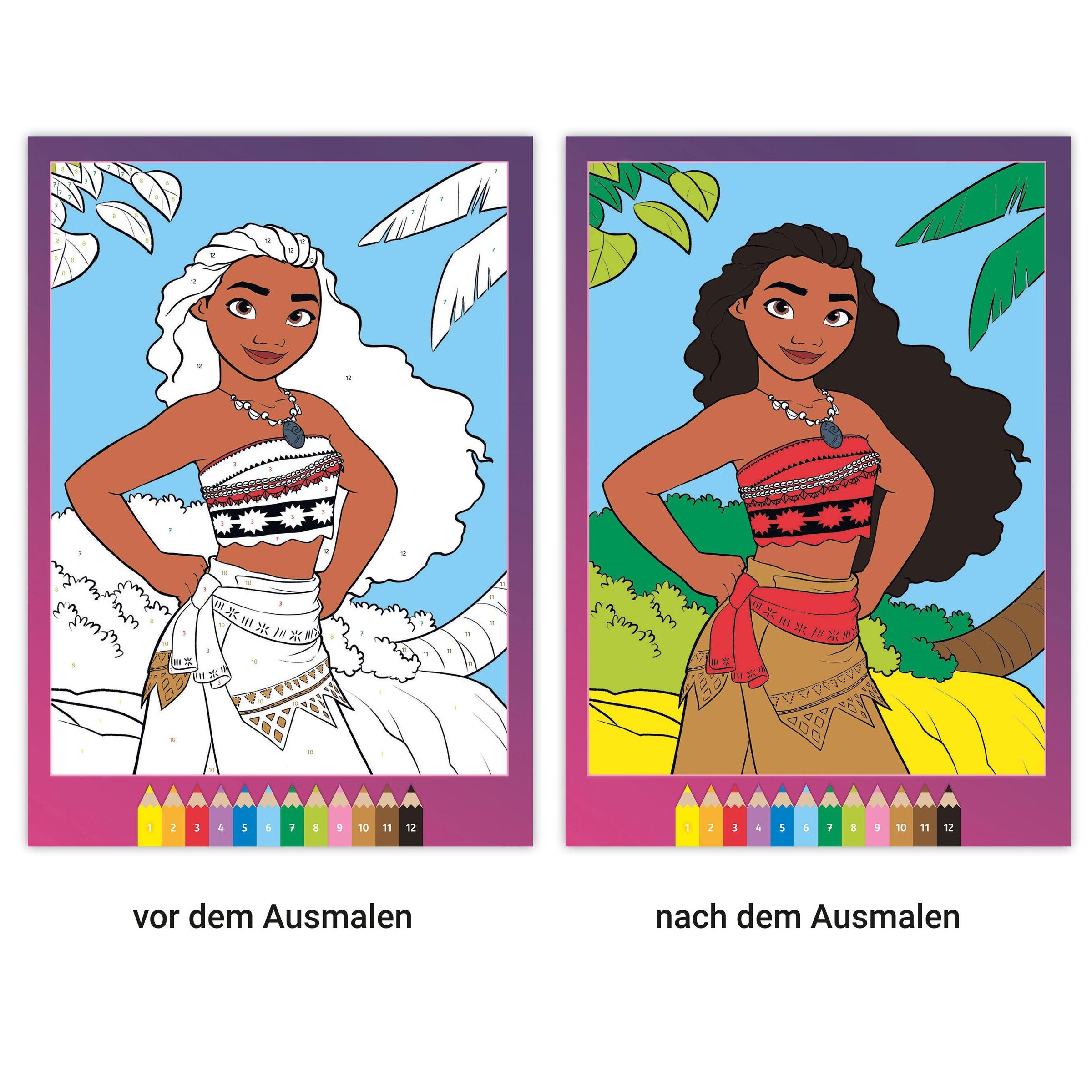 Von Arielle bis Vaiana: Das Malbuch enthält viele wunderschöne Ausmalmotive zu den Disney Prinzessinnen. Die altersgerechten Motive und nummerierten Ausmalfelder machen das Weitermalen der Bilder kinderleicht. So entstehen im Handumdrehen perfekte Kunstwerke. Die Zahlen sind so zart, dass sie beim Übermalen verschwinden. Die Farbpalette der Motive umfasst 12 Farben.