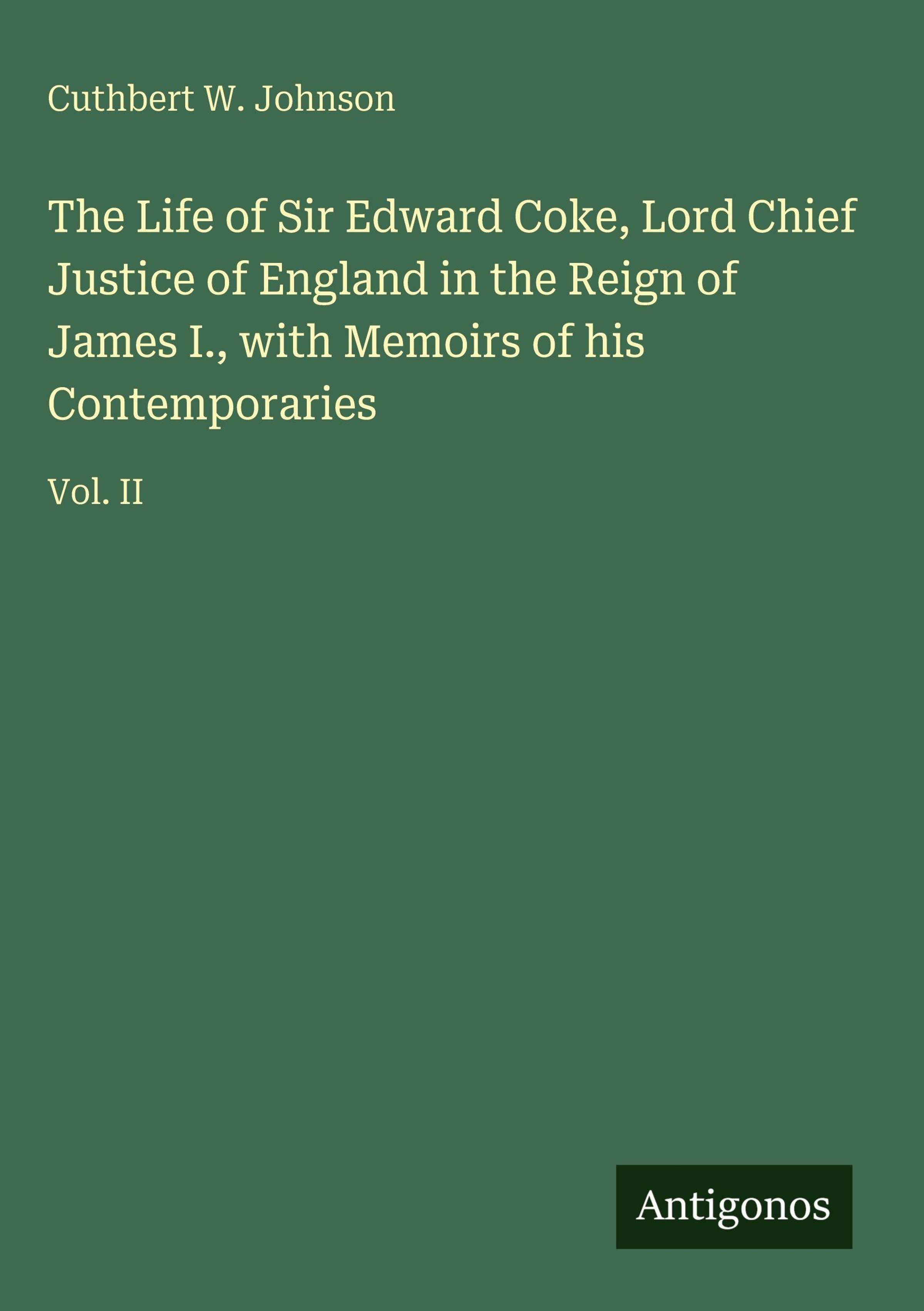 Cuthbert W. Johnson: The Life of Sir Edward Coke, Lord Chief Justice of England in the Reign of James I., with..., Gebunden