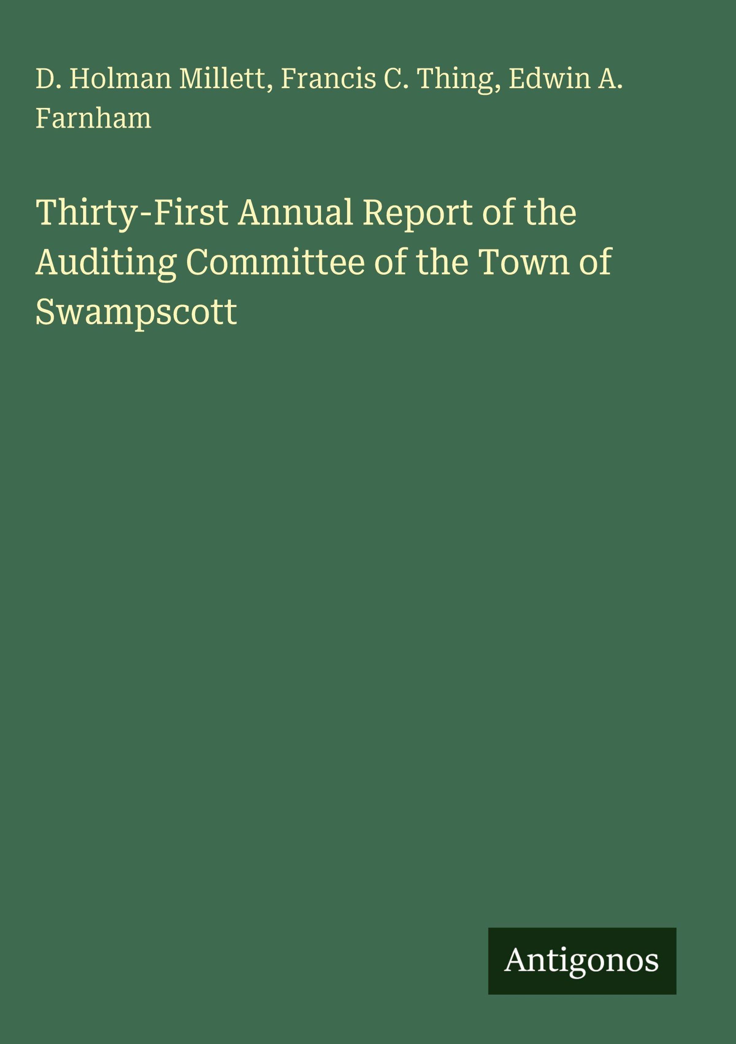 D. Holman Millett: Thirty-First Annual Report of the Auditing Committee of the Town of Swampscott, Gebunden