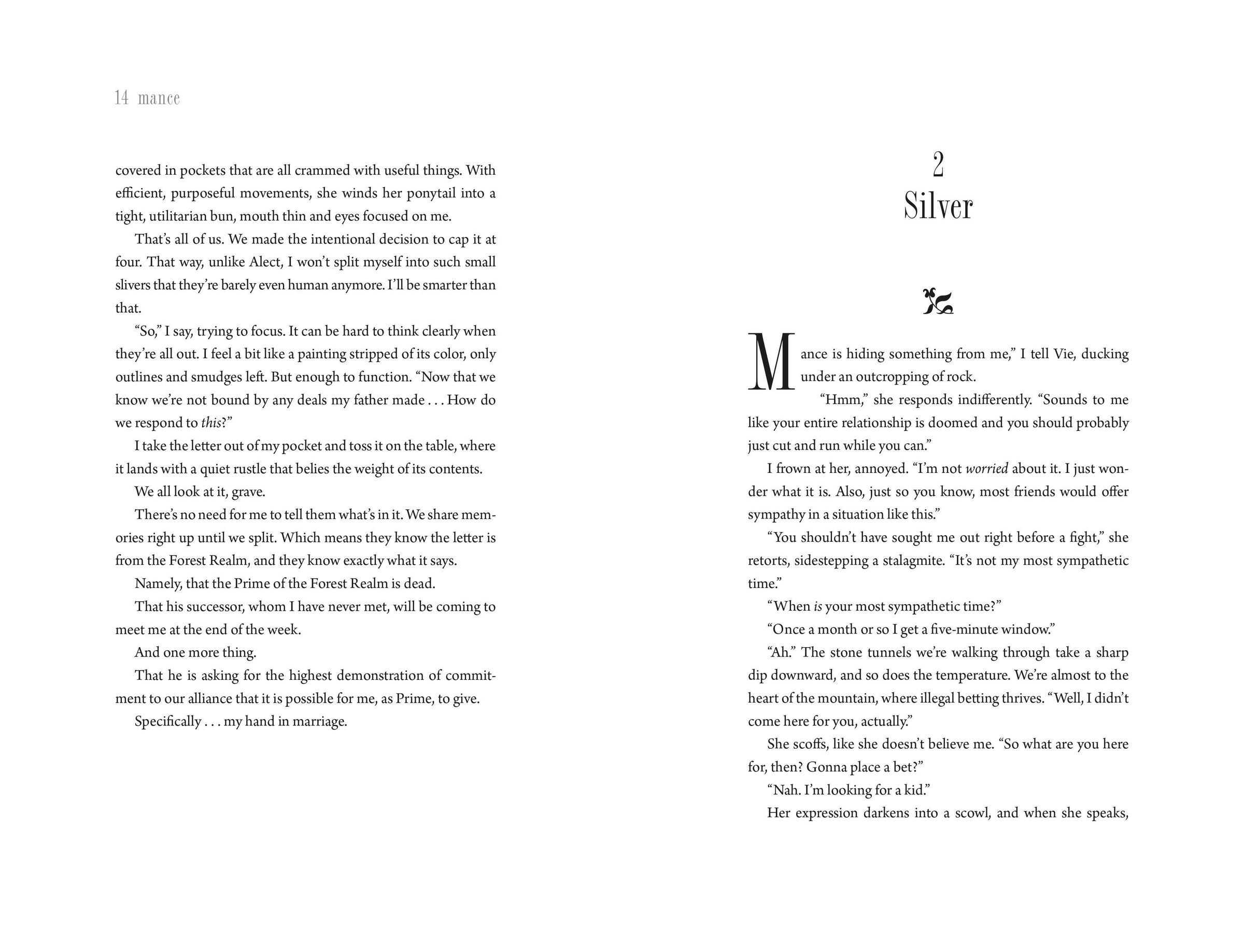 Mancella has defeated her tyrannous father and ascended the throne - but her fractured realm and unruly magic threaten to destroy everything she has won. Rumours swirl of a secret enemy plotting her downfall. Her budding romance with Silver, thief turned confidant, is the only thing keeping Mance together.