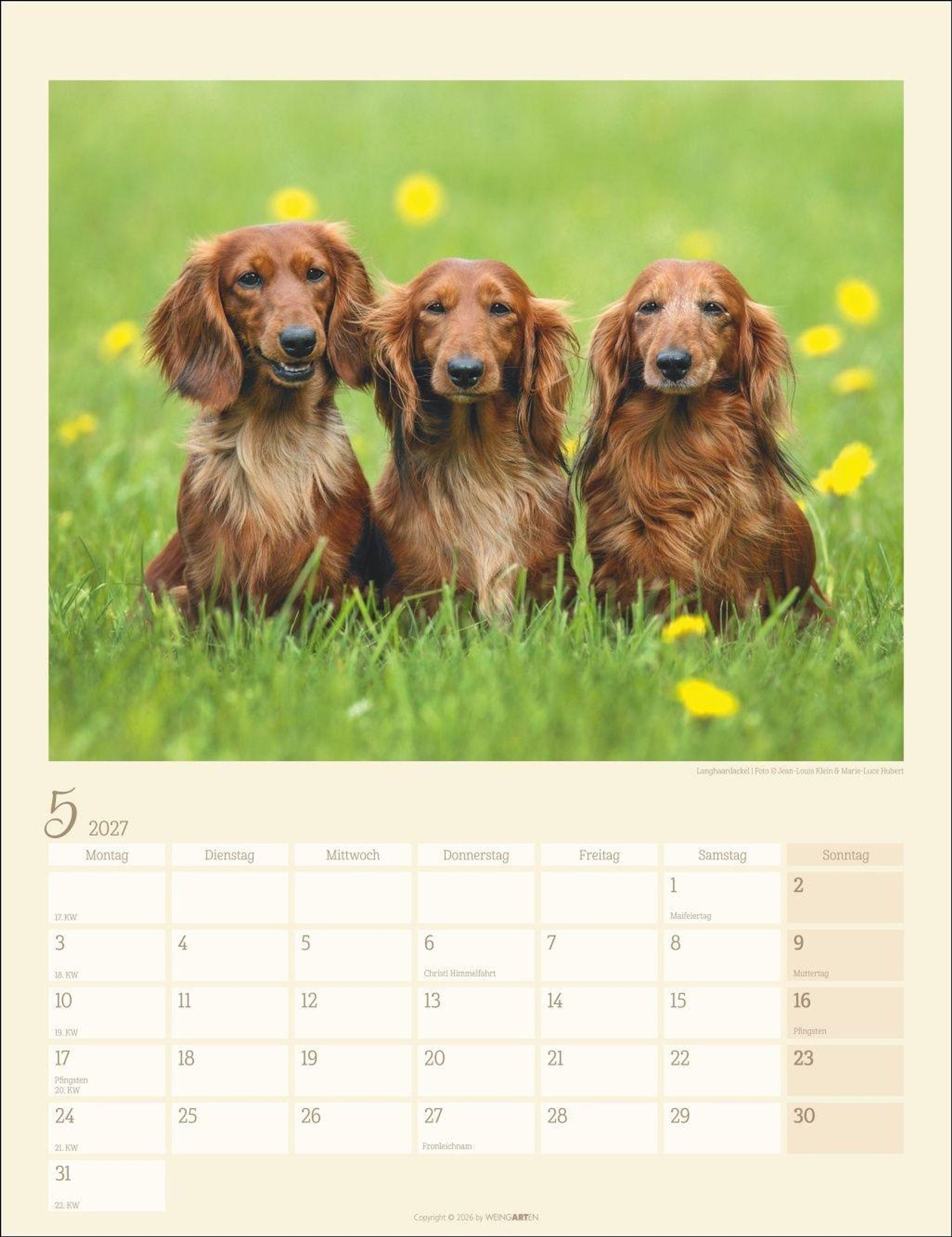- Jahres-Wandkalender 2027 mit Platz für Notizen und Termine. Foto-Kalender für Hundefans und Dackelliebhaber. Bildkalender im Hochformat 30 x 39 cm