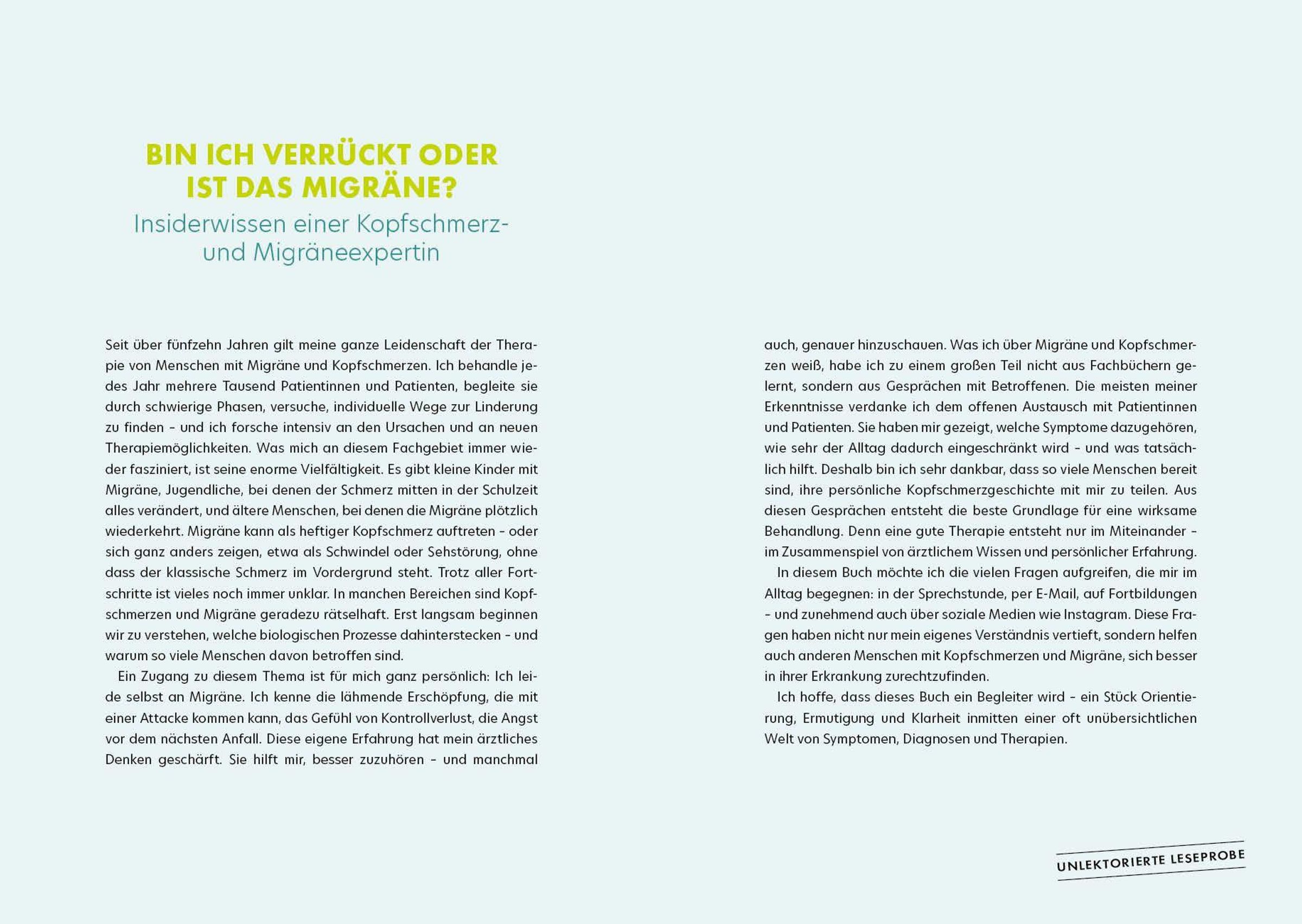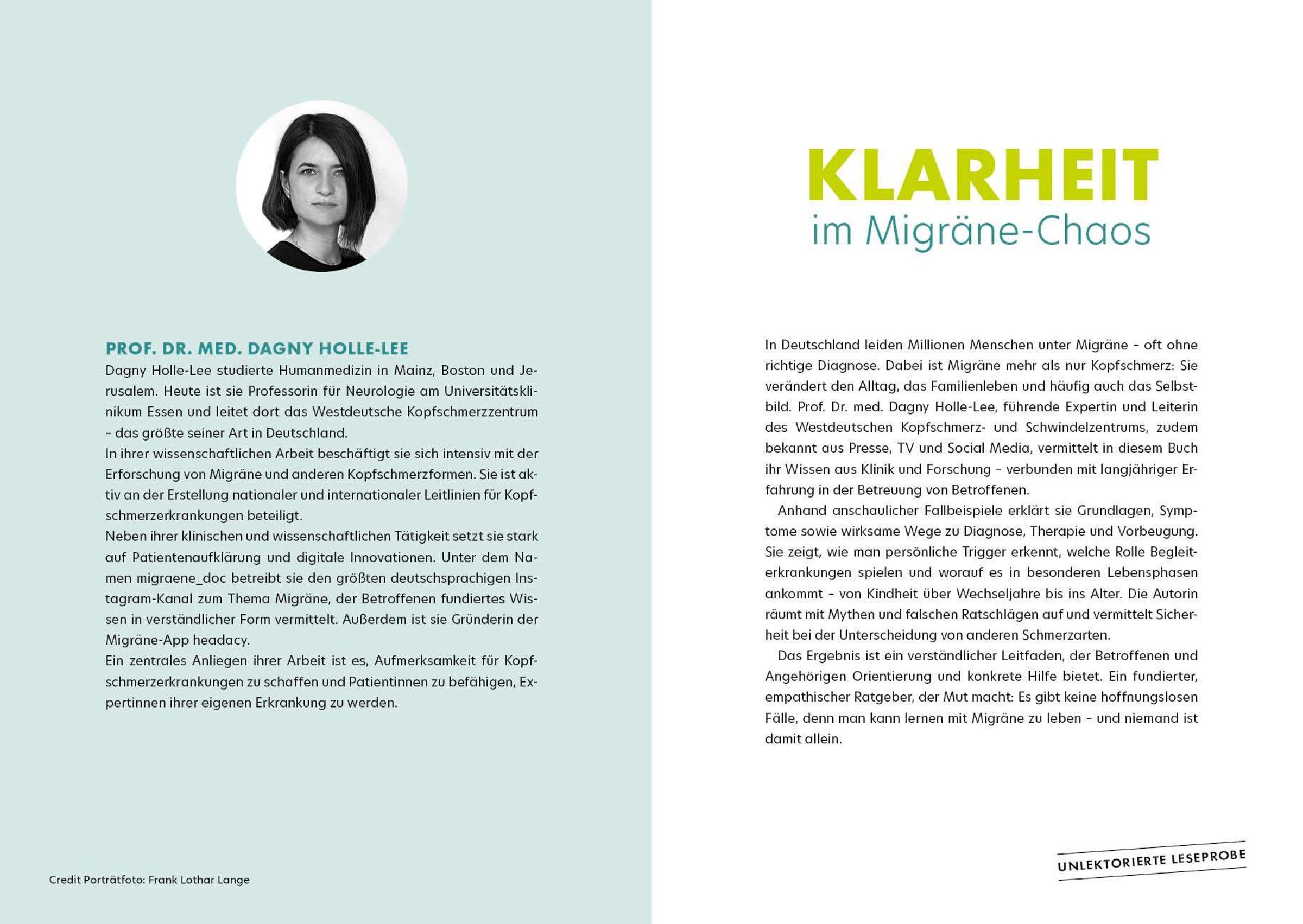 In Deutschland leiden Millionen Menschen unter Migräne -- oft ohne richtige Diagnose. Dabei ist Migräne mehr als nur Kopfschmerz: Sie verändert den Alltag, das Familienleben und häufig auch das Selbstbild. Prof. Dr. med. Dagny Holle-Lee, führende Expertin und Leiterin des Westdeutschen Kopfschmerz- und Schwindelzentrums, zudem bekannt aus Presse, TV und Social Media, vermittelt in diesem Buch ihr Wissen aus Klinik und Forschung -- verbunden mit langjähriger Erfahrung in der Betreuung von Betroffenen.