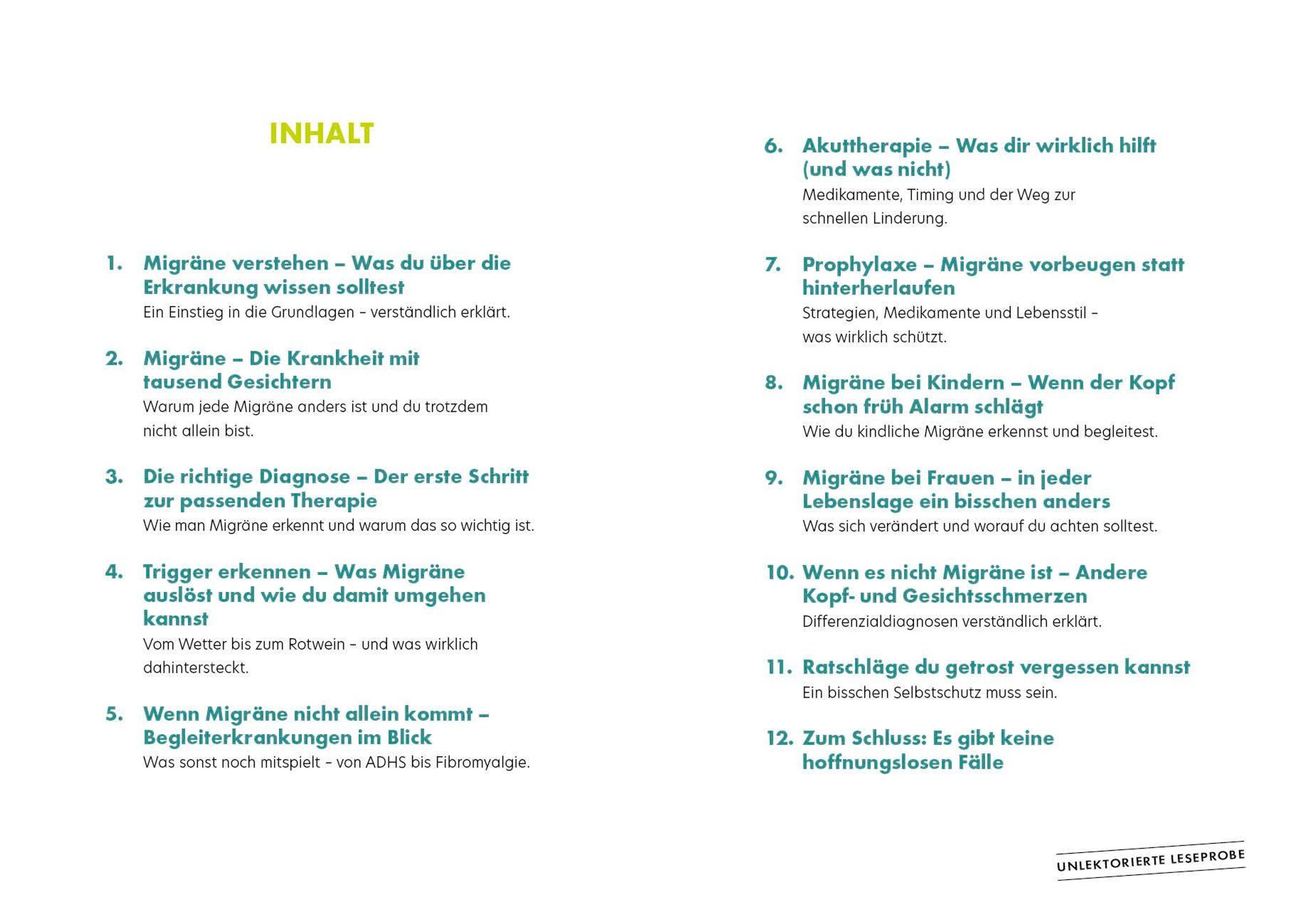 Das Ergebnis ist ein verständlicher Leitfaden, der Betroffenen und Angehörigen Orientierung und konkrete Hilfe bietet. Ein fundierter, empathischer Ratgeber, der Mut macht: Es gibt keine hoffnungslosen Fälle, denn man kann lernen mit Migräne zu leben -- und niemand ist damit allein.