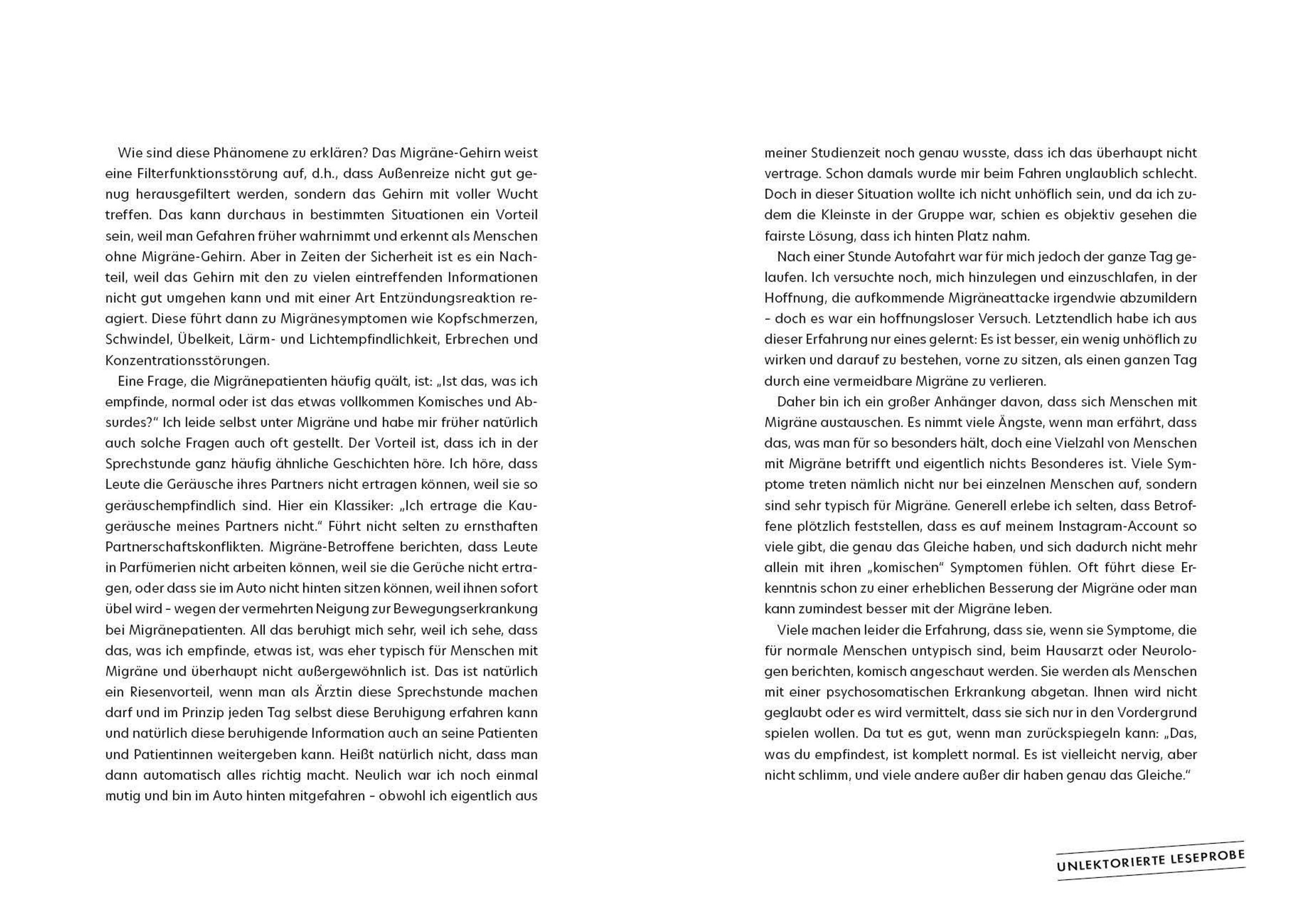 Anhand anschaulicher Fallbeispiele erklärt sie Grundlagen, Symptome sowie wirksame Wege zu Diagnose, Therapie und Vorbeugung. Sie zeigt, wie man persönliche Trigger erkennt, welche Rolle Begleiterkrankungen spielen und worauf es in besonderen Lebensphasen ankommt -- von Kindheit über Wechseljahre bis ins Alter. Die Autorin räumt mit Mythen und falschen Ratschlägen auf und vermittelt Sicherheit bei der Unterscheidung von anderen Schmerzarten.