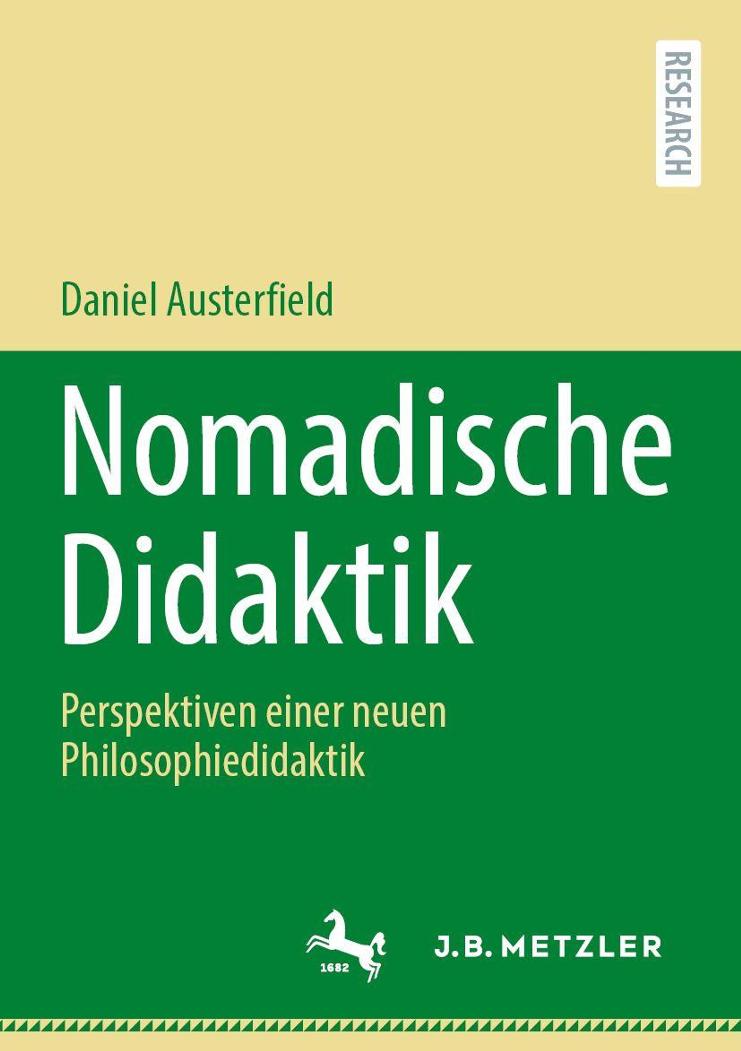 "Nomadische Didaktik" von Daniel Austerfield. Grünes Cover mit gelbem oberen Bereich. J.B. Metzler-Logo unten., Buch