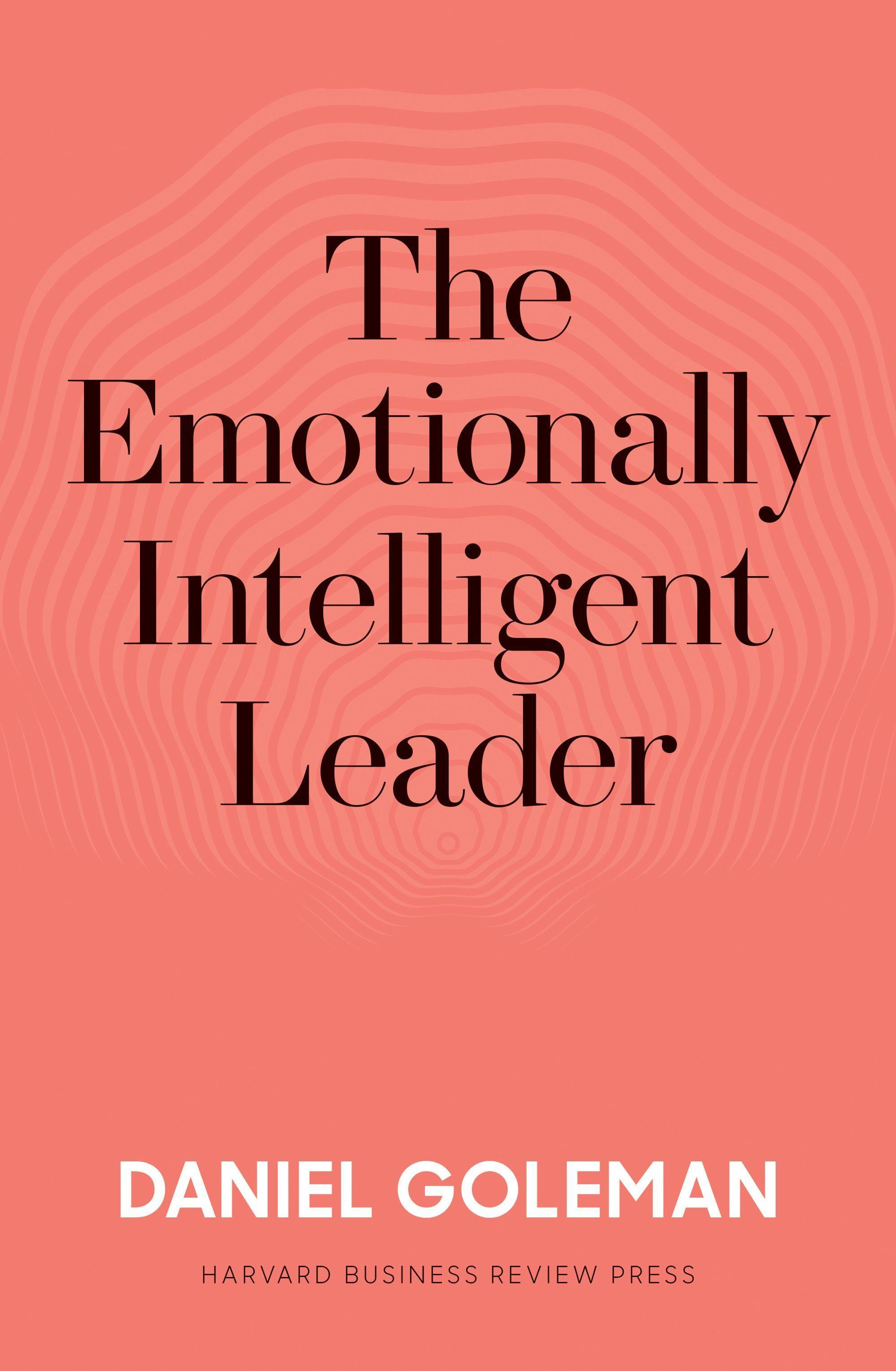„The Emotionally Intelligent Leader“ von Daniel Goleman, Harvard Business Review Press. Roter Hintergrund mit Linienmuster., Buch