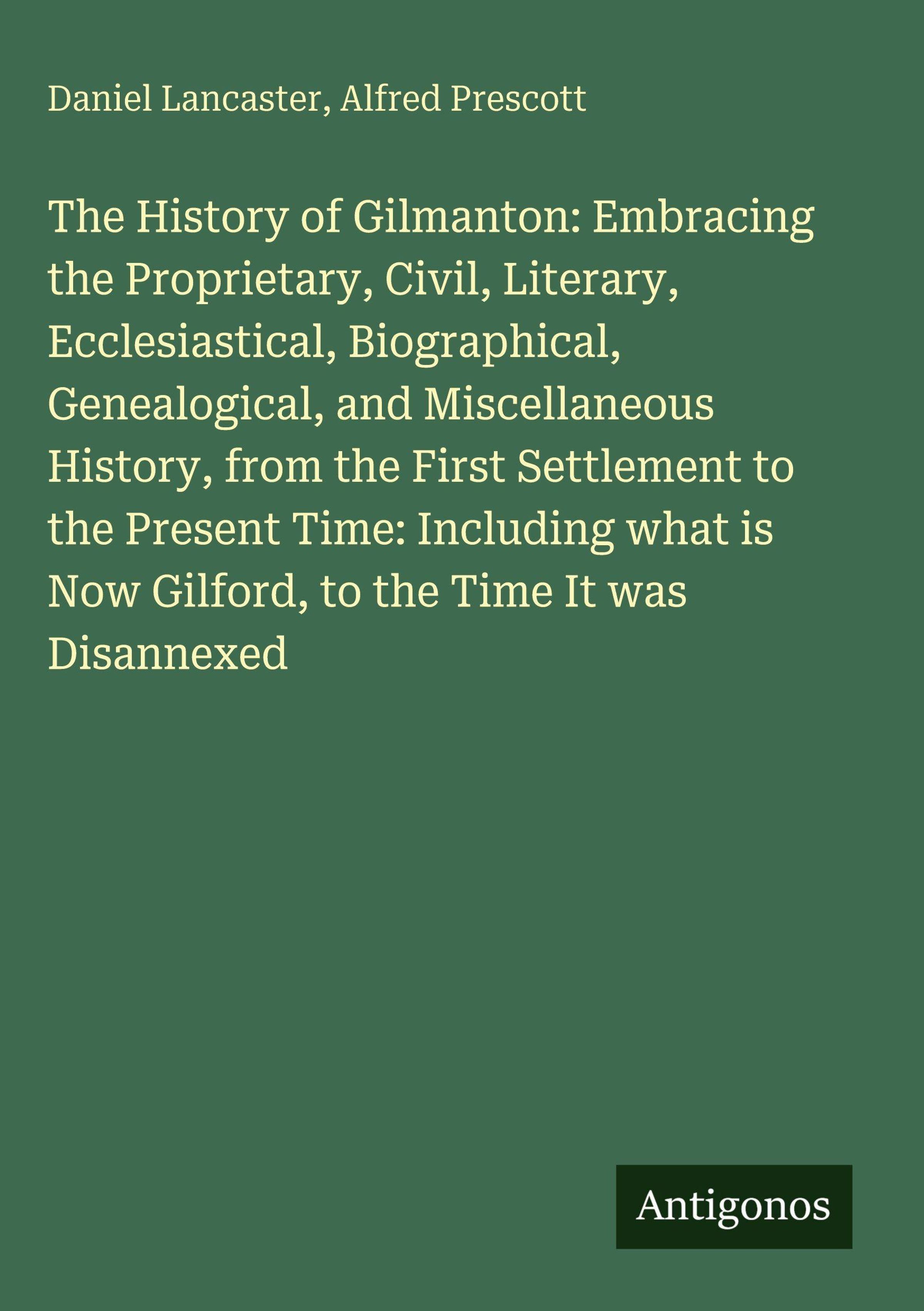 Daniel Lancaster: The History of Gilmanton: Embracing the Proprietary, Civil, Literary, Ecclesiastical,..., Gebunden