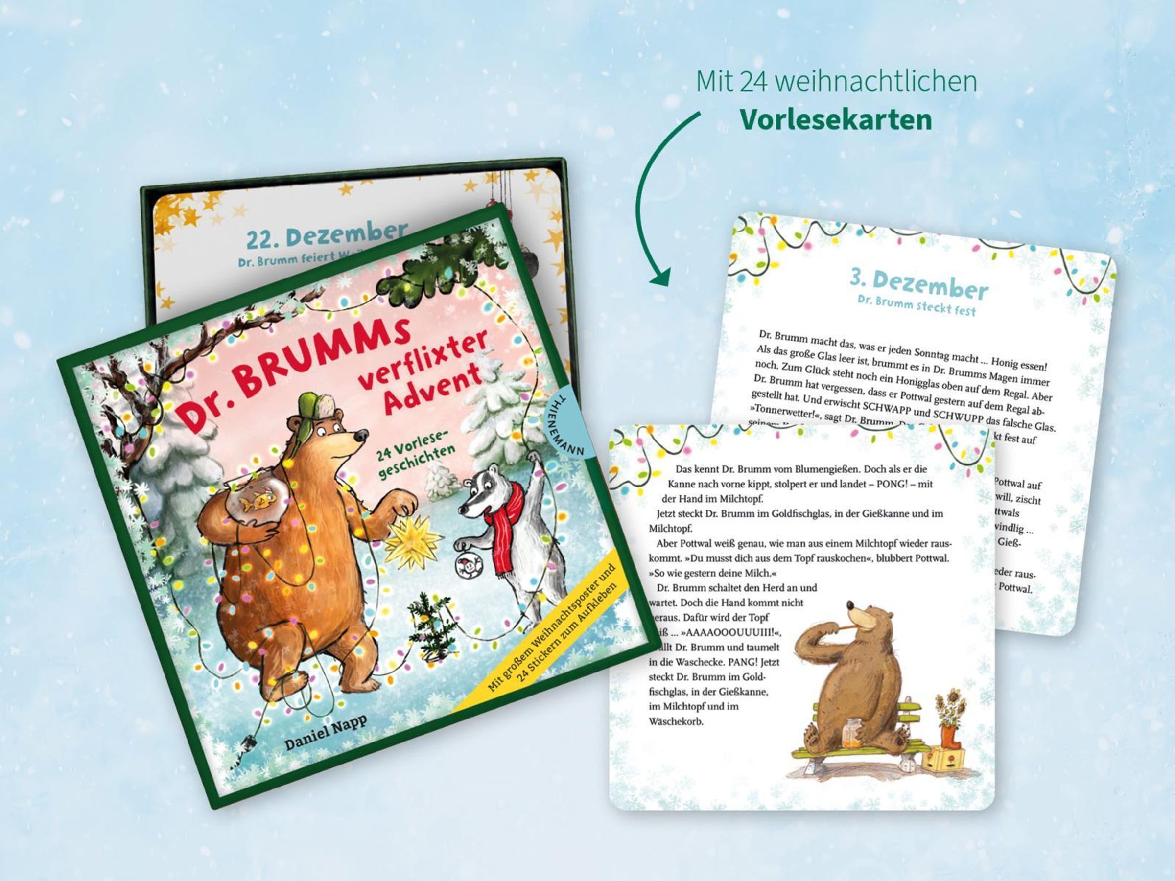 . 24 liebevoll gestaltete Vorlesekarten mit den witzigsten Dr. Brumm-Geschichten