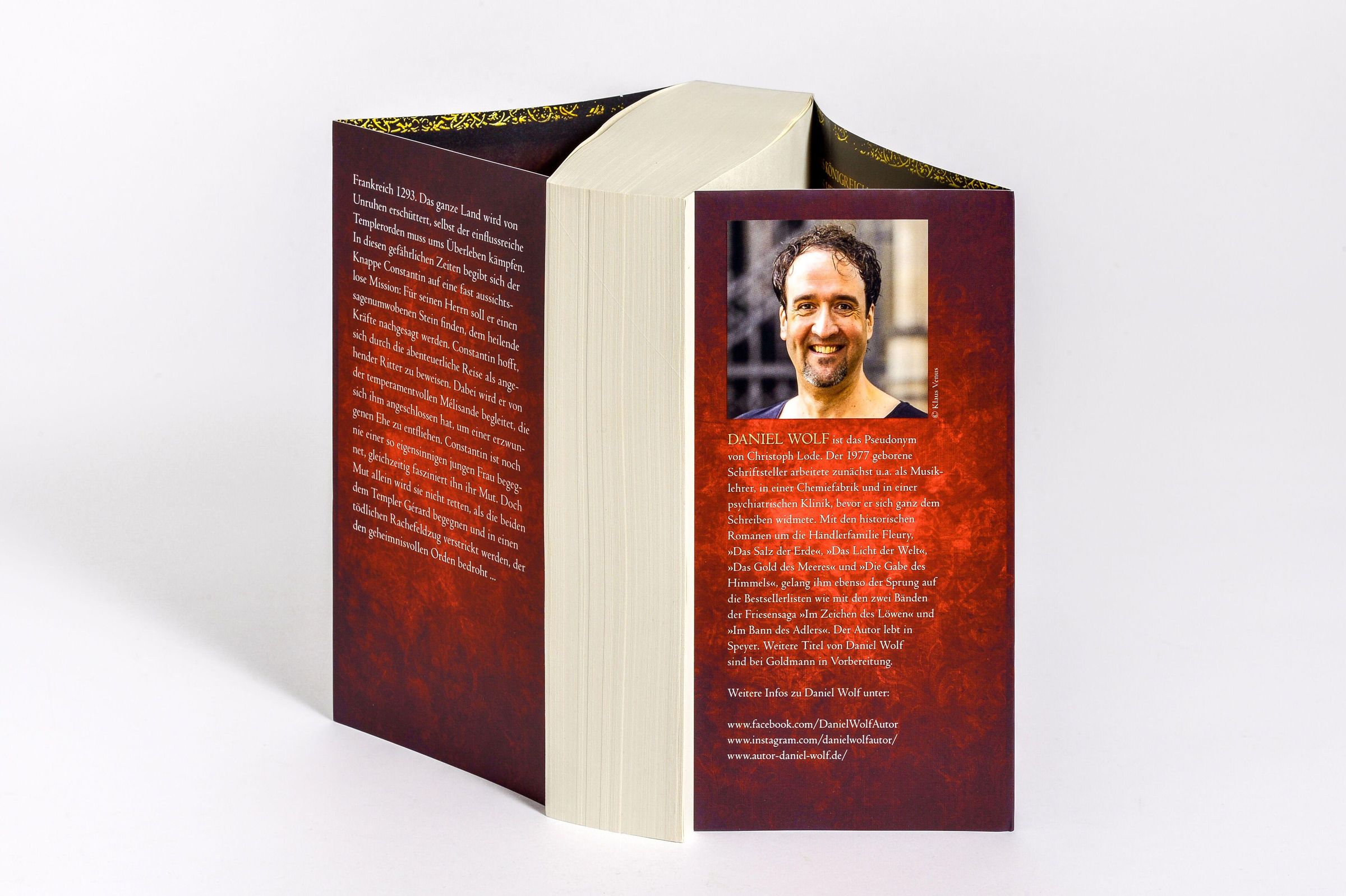Daniel Wolf, geboren 1977, arbeitete u.a. als Musiklehrer, in einer Chemiefabrik und im Öffentlichen Dienst, bevor er freier Schriftsteller wurde. Schon als Kind begeisterte er sich für alte Ruinen, Sagen und Ritterrüstungen; seine Leidenschaft für Geschichte und das Mittelalter führte ihn schließlich zum historischen Roman. Er lebt mit seiner Frau und zwei Katzen in einer der ältesten Städte Deutschlands.Anmerkungen: