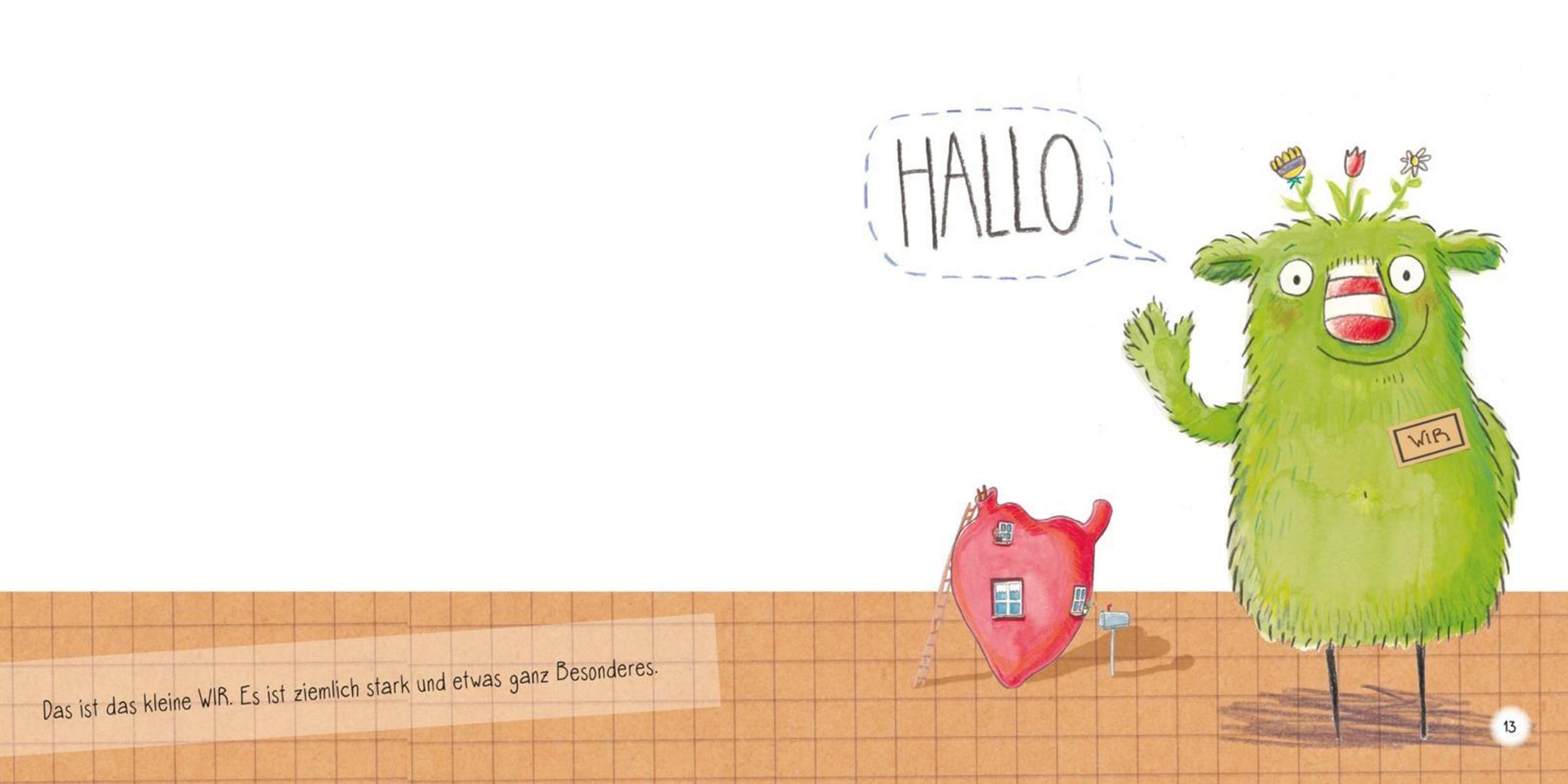 Spielerisch Sozialkompetenzen erlernen - mit dem kleinen WIRDie liebenswerte Figur mit dem grünen Wuschelfell, der rot-weiß gestreiften Nase und den drei Blümchen auf dem Kopf verkörpert, was für Kinder oft noch zu abstrakt ist: das Gemeinschaftsgefühl. Das kleine WIR hilft beim Erkennen, Reflektieren und Verbalisieren der eigenen Gefühle und Bedürfnisse - egal ob zu Hause, im Kindergarten, in der Schule oder in Freundschaften.