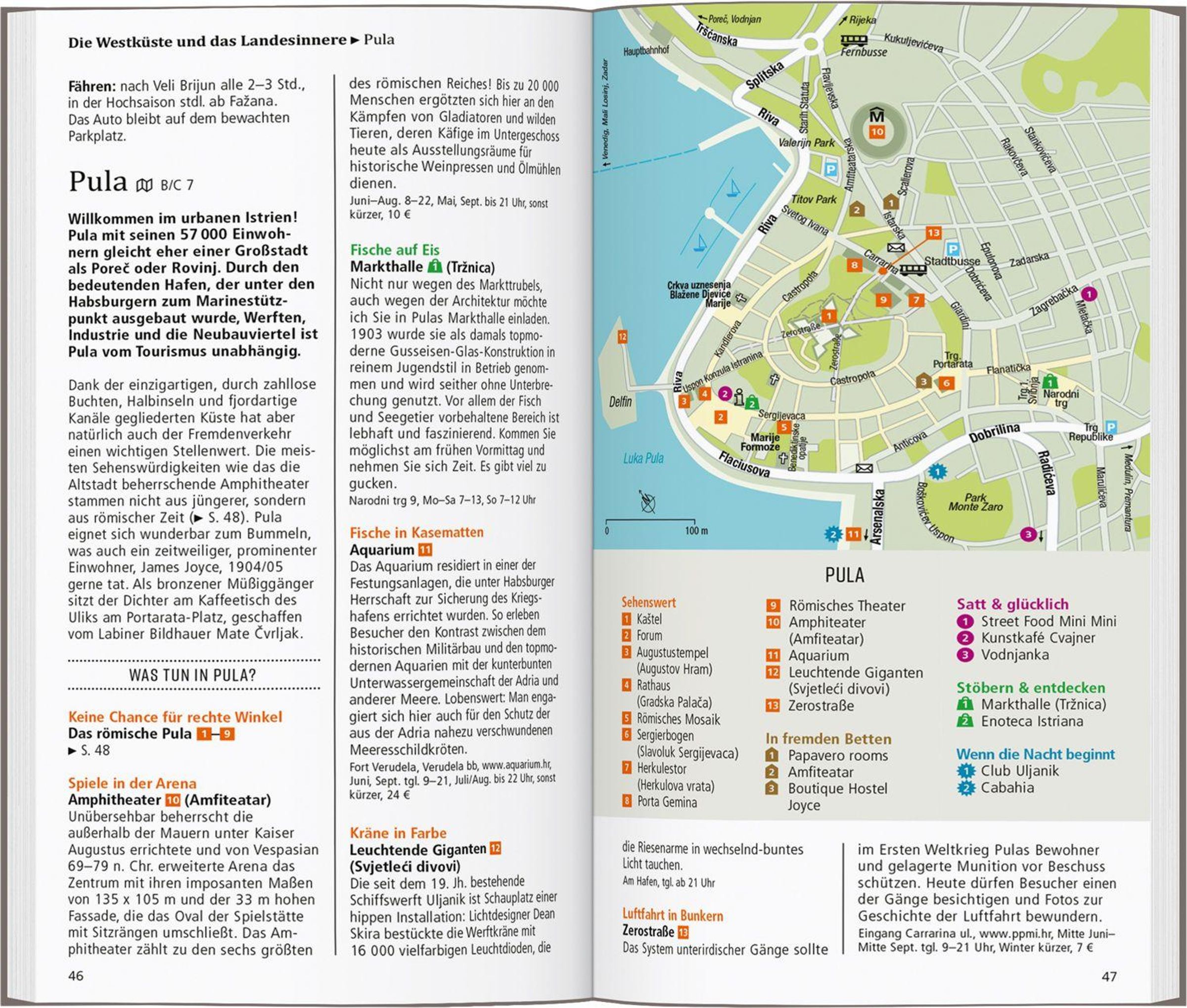 Kristallklares Meer, idyllische Inselwelten und Bergdörfer im Hinterland - in Istrien und an der Kvarner Bucht herrscht kein Mangel an Bilderbuchkulissen. Die Bewohner schätzen vor allem die unangestrengte Multikulturalität ihres Landstrichs an der Adria. Mit den 15 'Direkt-Kapiteln' des Reiseführers von Daniela Schetar können Sie sich zwanglos unter die Slowenen und Kroaten mischen, direkt in das Lebensgefühl an der Adria eintauchen, aktiv in der Natur entspannen und die Highlights kennenlernen: venezianische Hafenstädtchen und nostalgische Seebäder, Olivenhaine und Weinfelder, Felsbuchten und Steilklippen, bunte Märkte und verwinkelte Altstädte, Feinschmeckerlokale und Kunstgalerien. Dank vieler Tipps und Adressen erfahren Sie, wo es sich in fremden Betten gut schläft, wo Sie glücklich satt werden, wohin die Menschen zum Stöbern und Entdecken gehen und wohin es sie zieht, wenn die Nacht beginnt. Mit den Übersichtskarten, genauen Stadtplänen und dem separaten großen Faltplan können Sie nach Lust und Laune Istrien und die Kvarner Bucht erkunden.