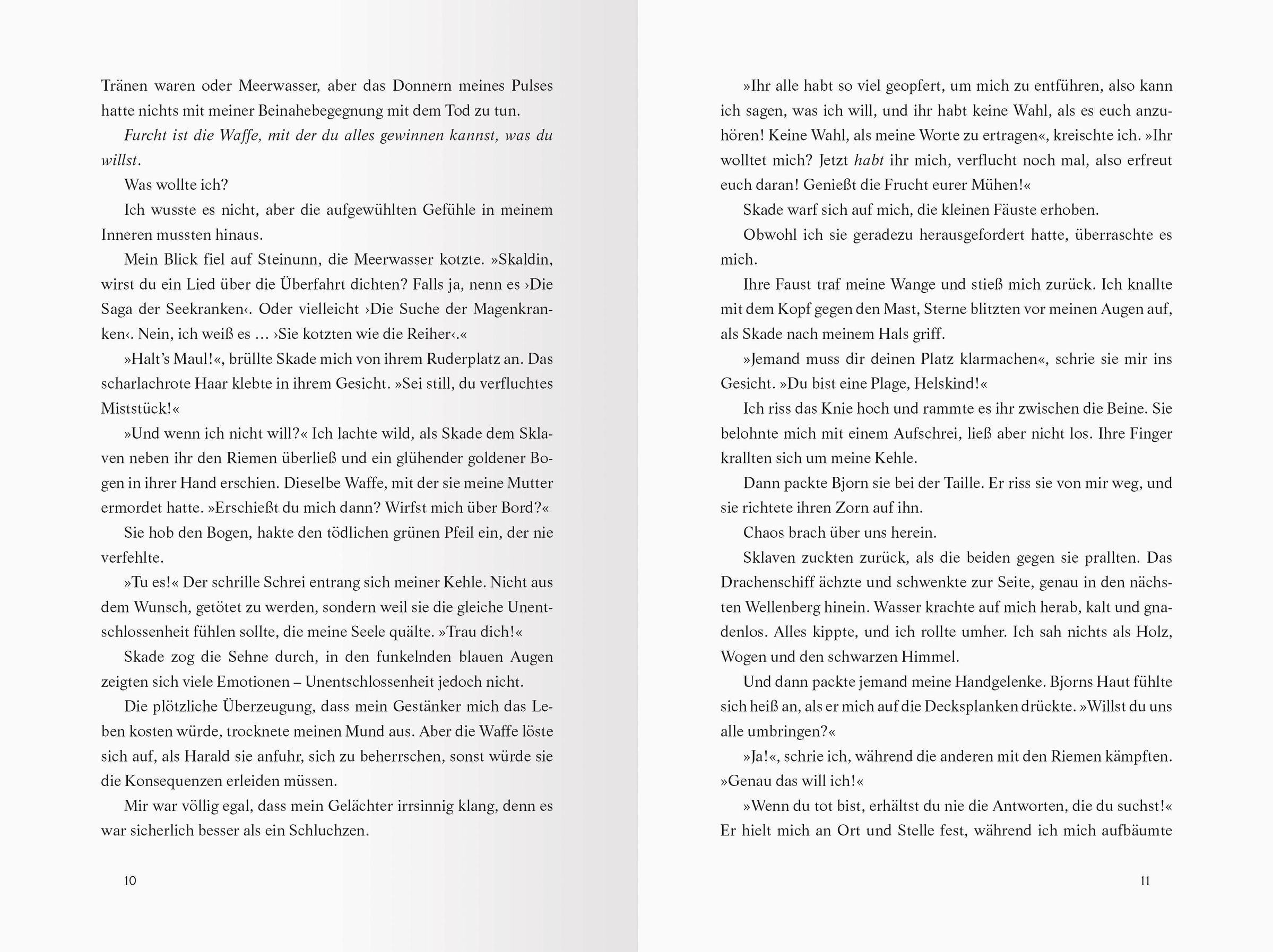 Bjorns Verrat hat Freya zutiefst verletzt. Dennoch bindet der Blutschwur sie für immer aneinander und sie müssen nach einem Weg suchen, den drohenden Krieg abzuwenden. Dabei tobt der härteste Kampf in Freya selbst: Wird ihre Magie ihr Volk beschützen oder es endgültig vernichten? Wider Willen fühlt Freya sich weiterhin zu Bjorn hingezogen und sehnt sich nicht nur danach, Seite an Seite mit ihm für ihr Land einzutreten - sondern auch, ihm ihr Herz erneut zu öffnen.