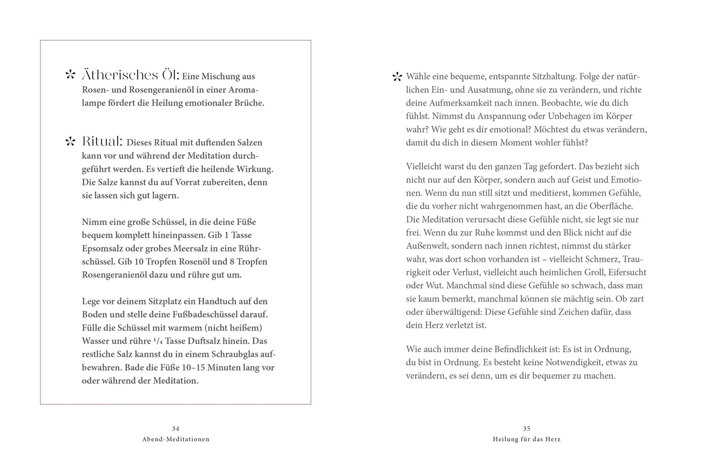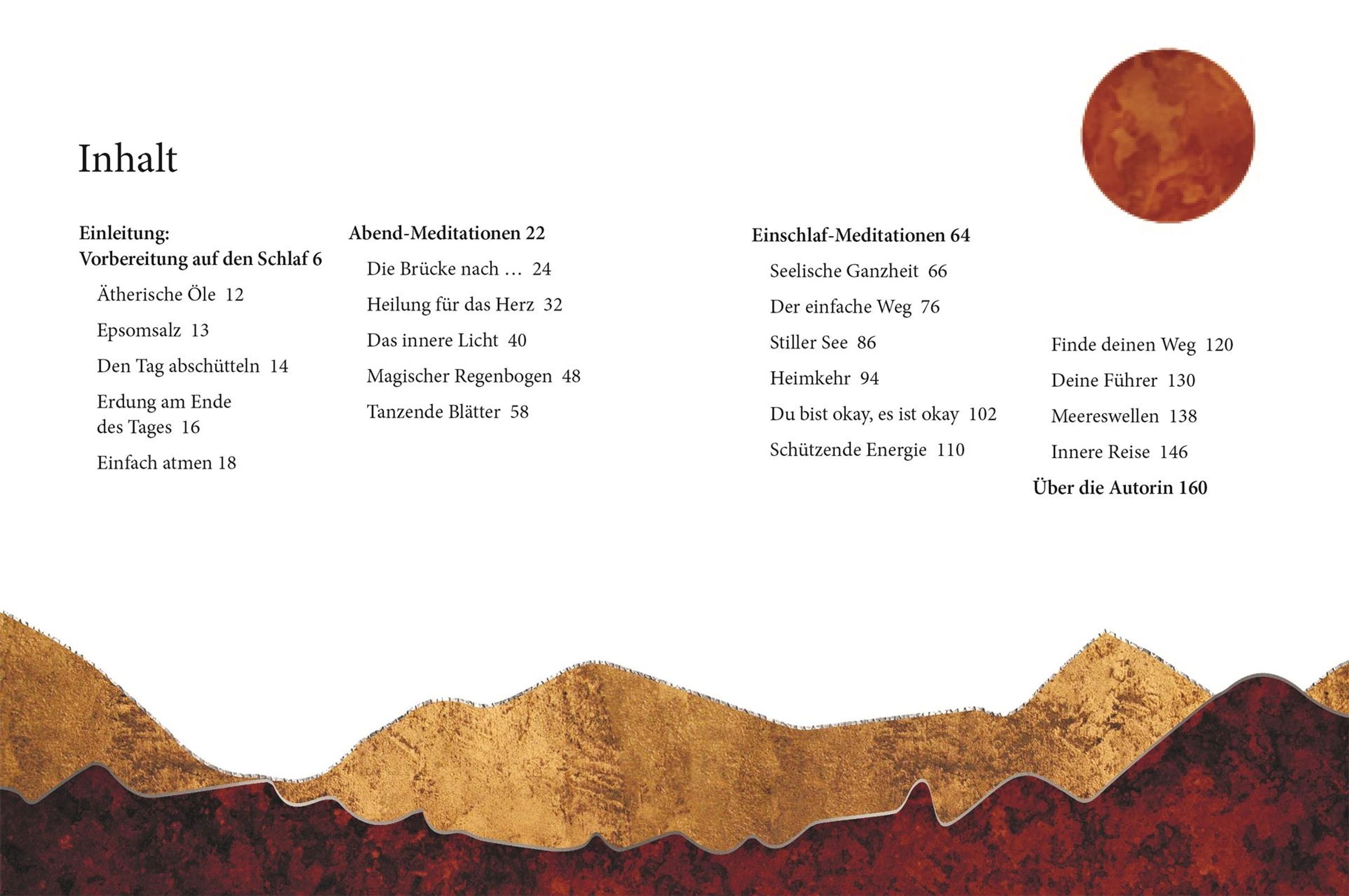 - Einschlaftipps & -rituale: Ob ätherische Öle, ein Abendspaziergang oder Atemübungen - mit begleitenden Ritualen vor den Meditationen kommen Sie sanft zur Ruhe.