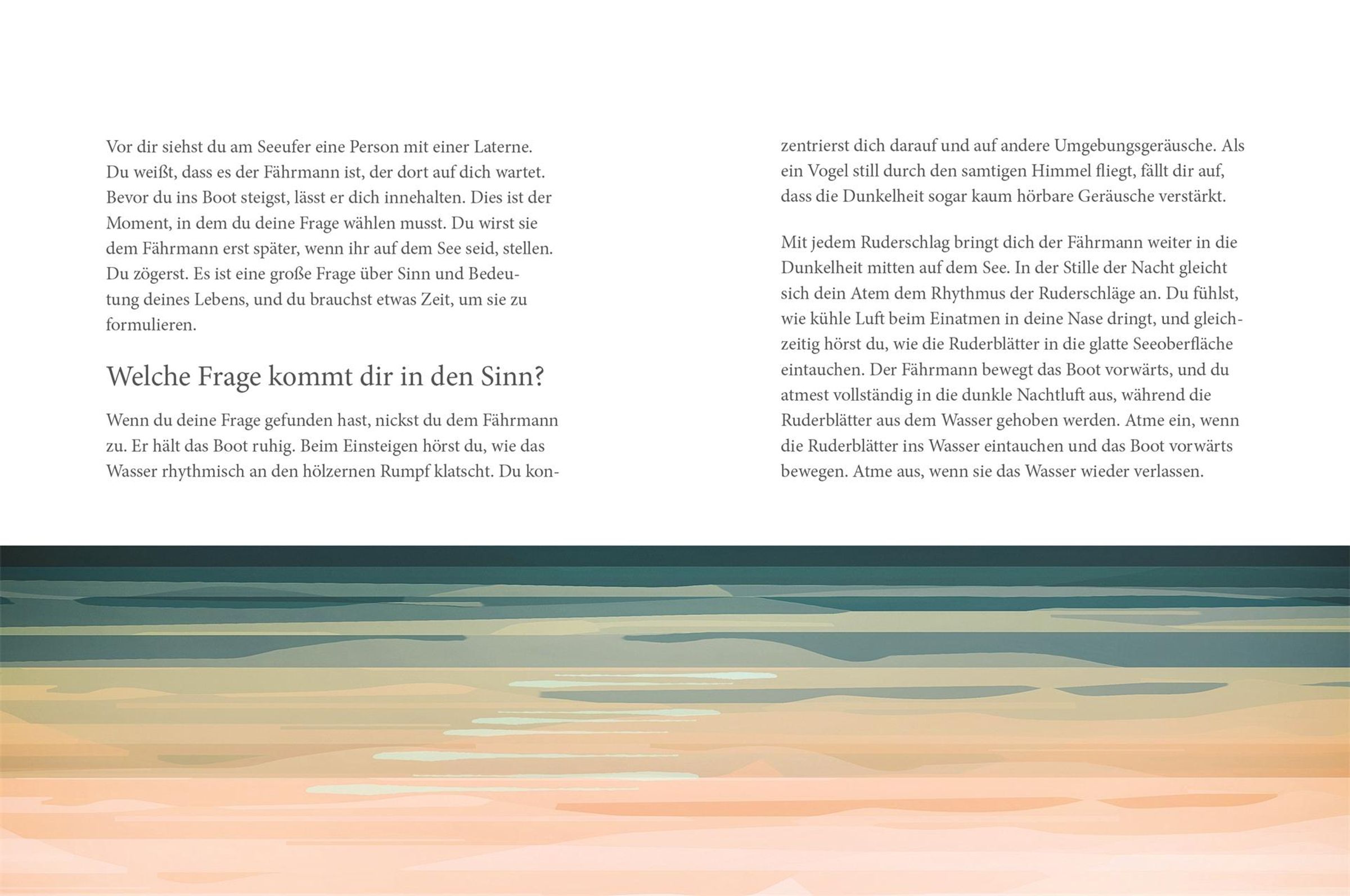- Harmonische Illustrationen unterstützen Sie bei den Entspannungsreisen für einen achtsamen Zustand des Bewusstseins.