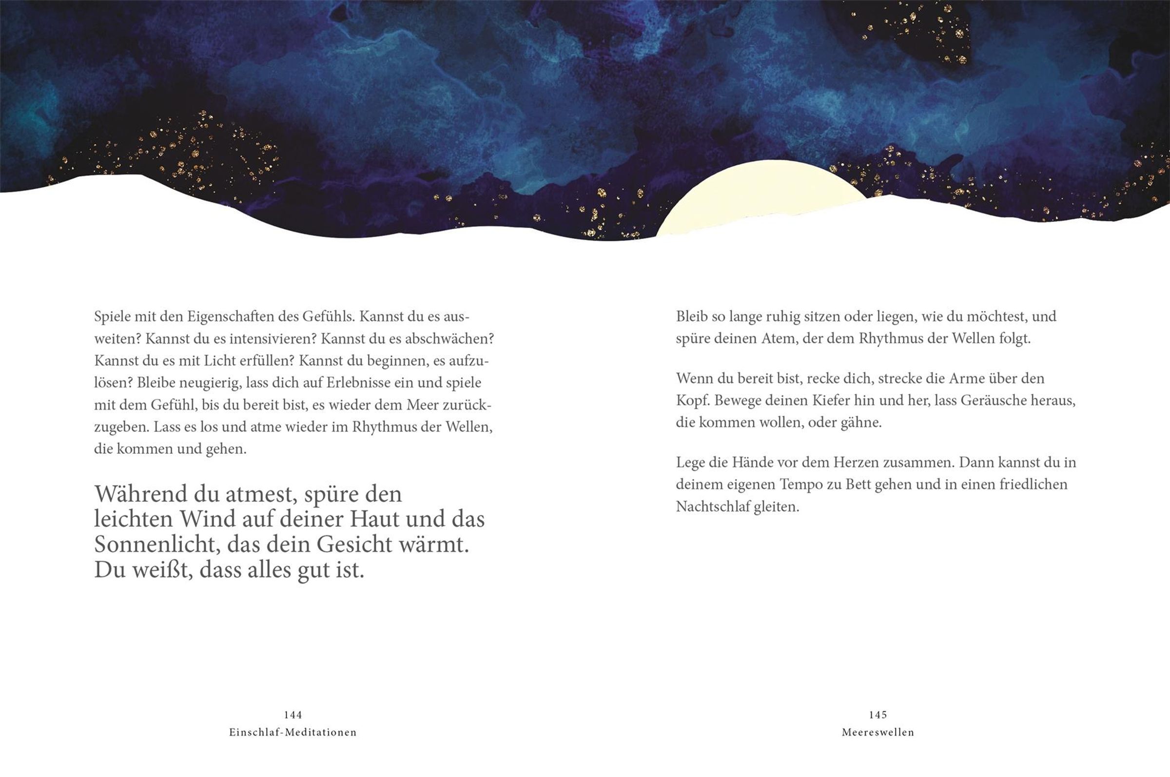 - Entspannende Meditationen zum Einschlafen: 15 abwechslungsreiche Übungen nehmen Sie mit zu einer Oase der Ruhe, an der Sie wieder Energie tanken können.