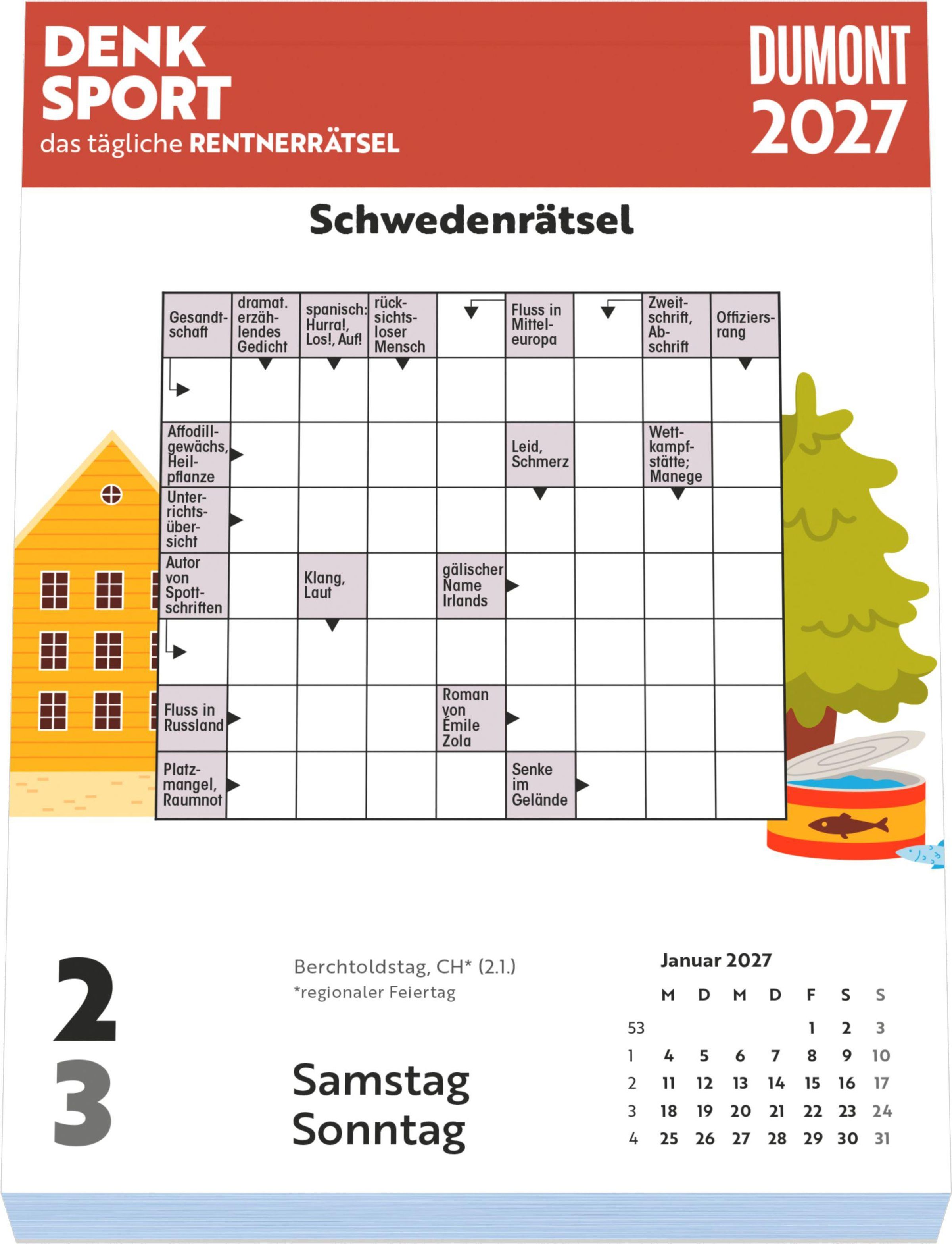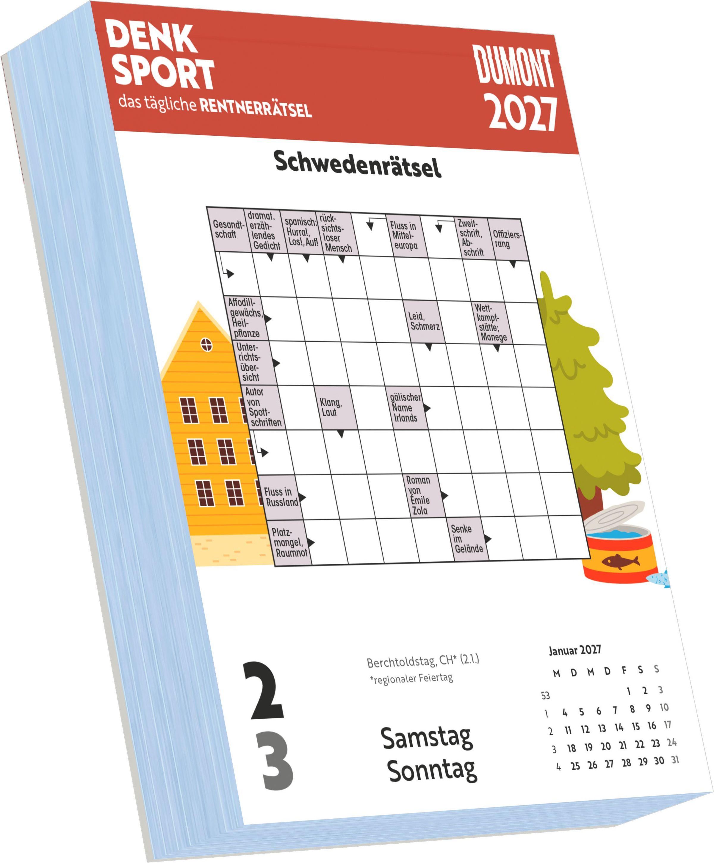 Schenken Sie sich selbst oder Ihren Liebsten täglich Freude und Denksport -- mit dem DUMONT Rentnerrätsel-Kalender 2027.