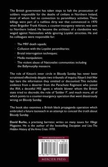 Kitson had spent decades in Britain's colonies refining old, and developing new, techniques which he applied in Northern Ireland. He became the architect of a clandestine war, waged against Nationalists while ignoring Loyalist atrocities. Kitson and his colleagues were responsible for: ¿ The establishment of the clandestine Military Reaction Force (MRF) which carried out assassinations on the streets of Belfast of suspected IRA members; ¿ They unleashed the most violent elements of the Parachute Regiment [1 Para] to terrorise Nationalist communities which, they adjudged, were providing support for the Official and Provisional IRA; ¿ Spreading black propaganda designed to undermine Republican but not Loyalist paramilitary groups; ¿ Deployed psychological warfare techniques, involving the torture of internees; ¿ Sent Kitson's 'Private Army' - Support Company of 1 Para - to Derry where they perpetrated the Bloody Sunday massacre.