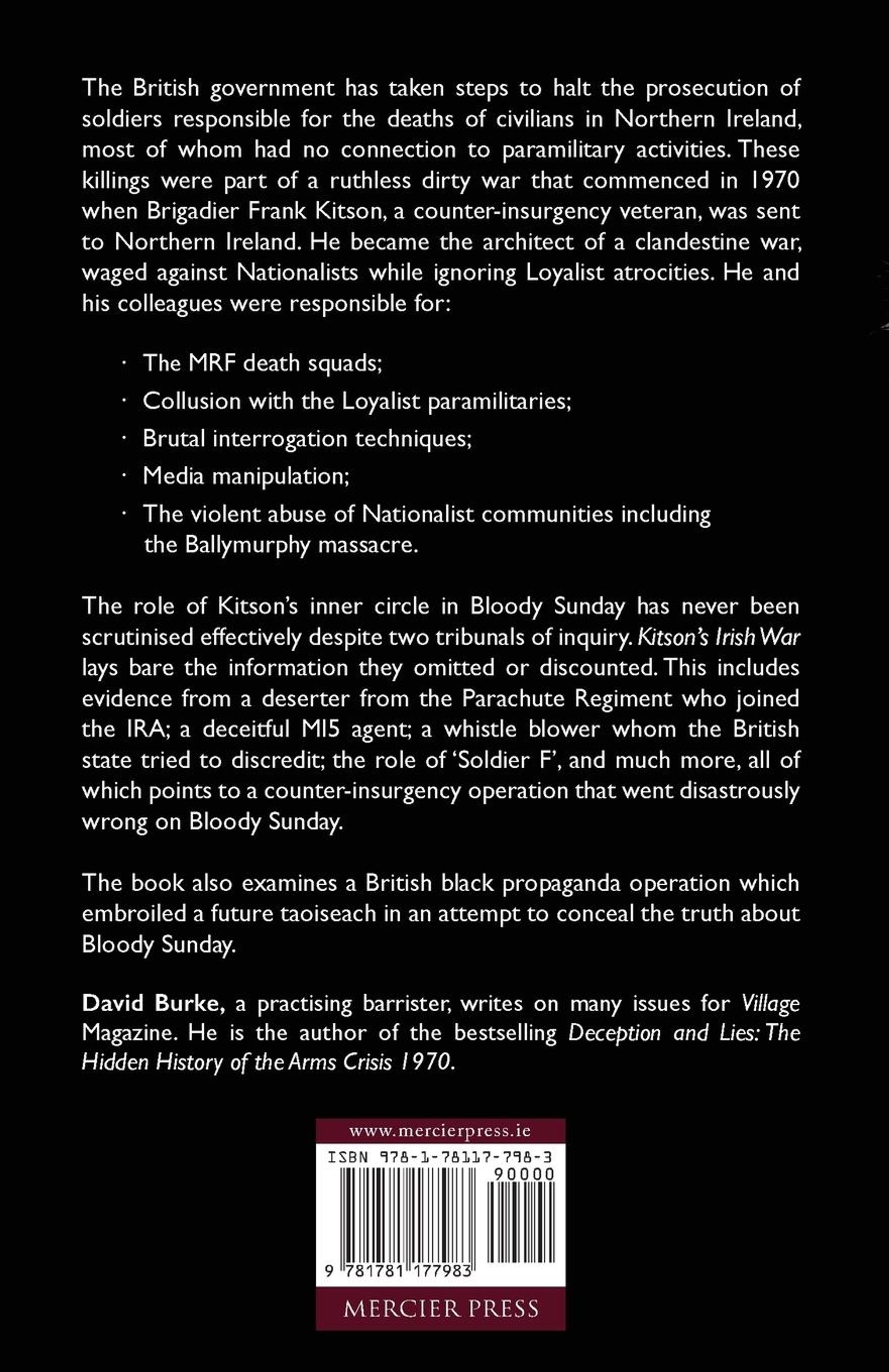 The British Widgery and Saville inquiries did not hold Kitson and his elite troops accountable for Bloody Sunday. Kitson's Irish War lays bare the evidence they discounted: Kitson's role in the events leading up to and surrounding that massacre; evidence from a deserter from 1 Para who joined the IRA; a deceitful MI5 agent; a courageous whistle blower whom the British state tried to discredit, and much more, all of which points to a motive for the attack on the Bogside.