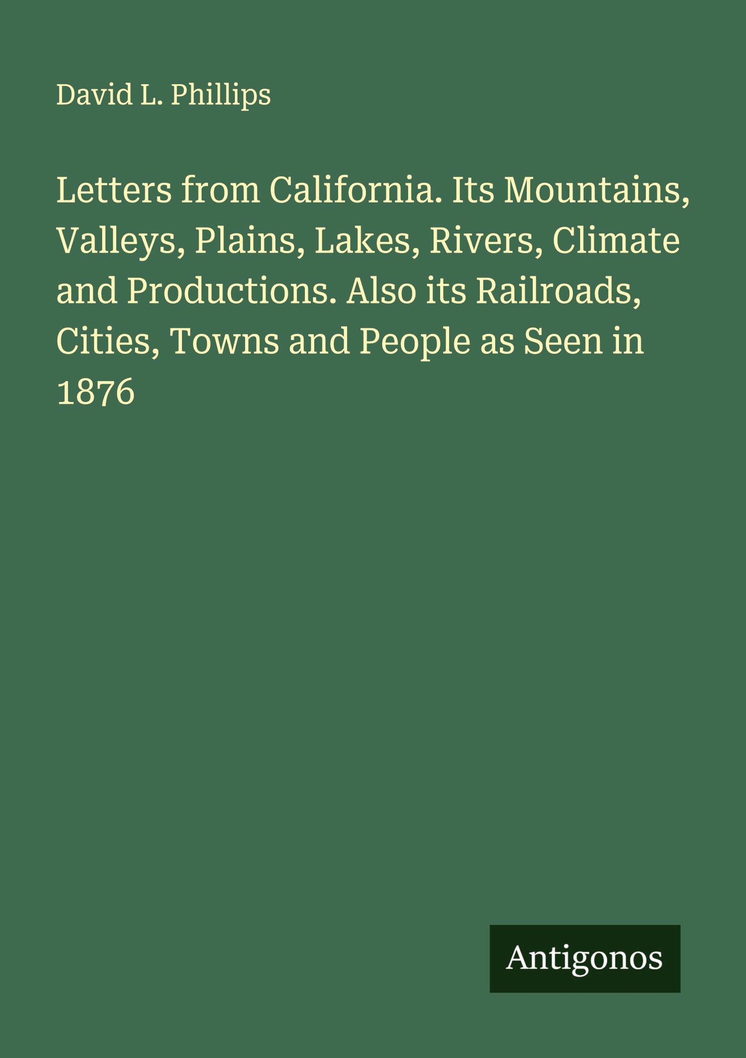 Der Artikel David L. Phillips: Letters from California. Its Mountains, Valleys, Plains, Lakes, Rivers, Climate and Productions. Also its Railroads, Cities, Towns and People as Seen in 1876 wurde in den Warenkorb gelegt.