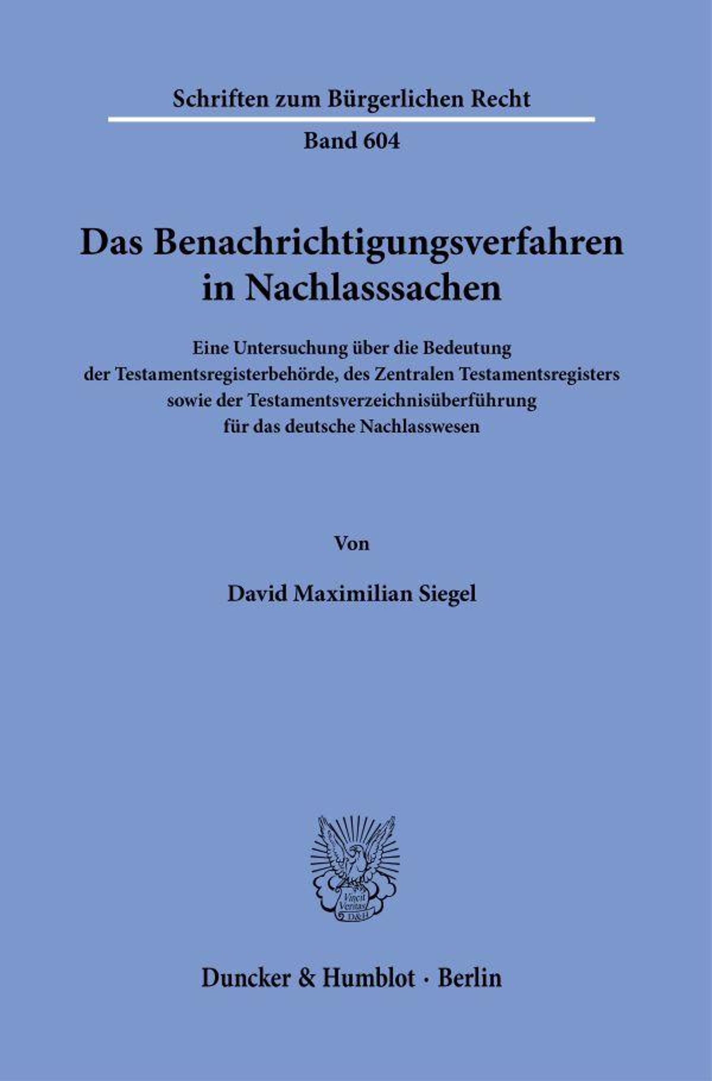Der Artikel David Maximilian Siegel: Das Benachrichtigungsverfahren in Nachlasssachen wurde in den Warenkorb gelegt.