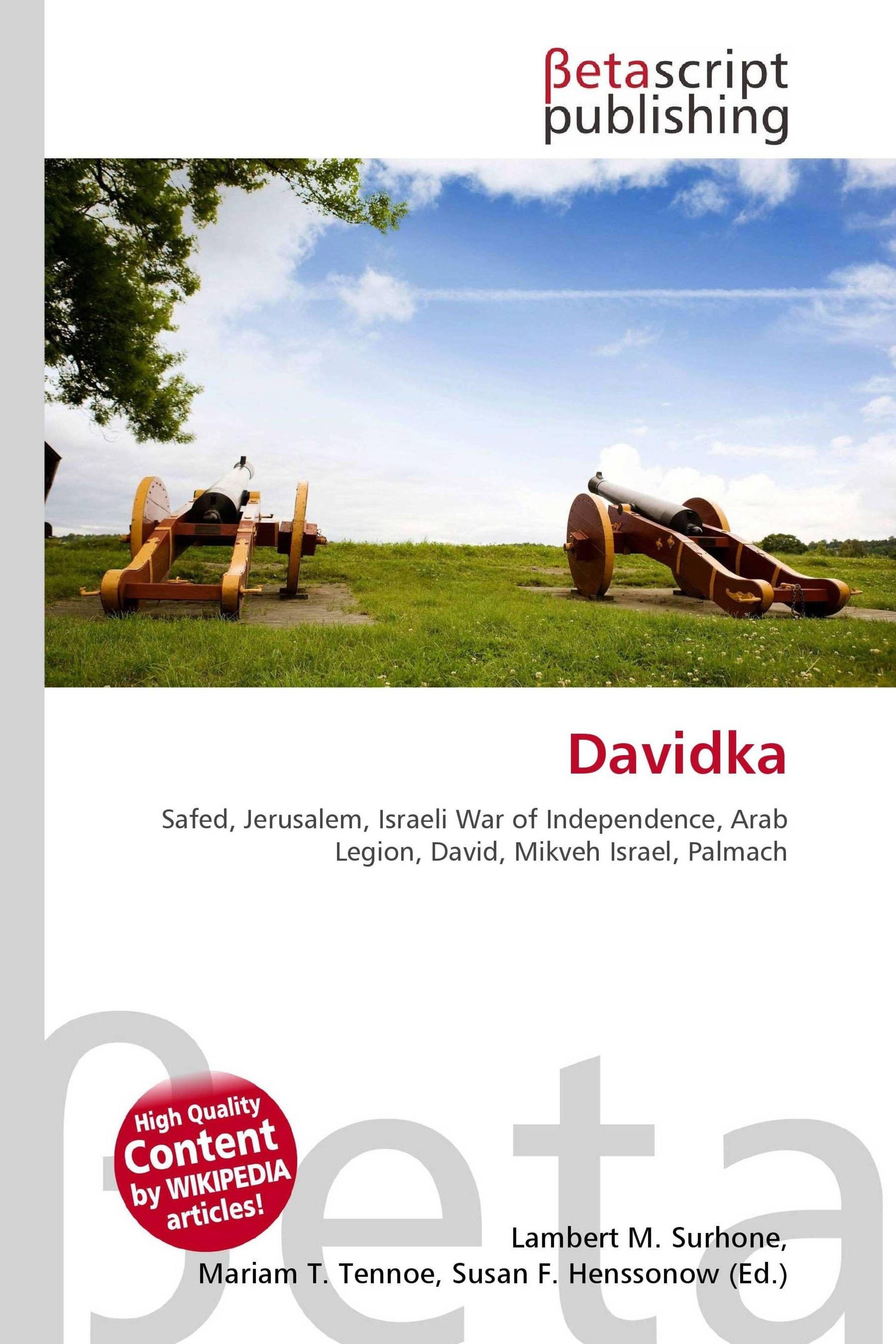 Please note that the content of this book primarily consists of articles available from Wikipedia or other free sources online. The Davidka (Hebrew: ) was a homemade Israeli mortar used in Safed and Jerusalem during the initial stages of the 1948 Israeli War of Independence. Its shells were reported to be extremely loud, but otherwise of little value, besides that of using fear tactics against the Arab forces. Due to their extreme noise and horrific explosions, they proved particularly useful in scaring away Arab forces, despite the fact that they were very inaccurate. It is nominally classified as a 3 inch (76.2 mm) mortar, although the shell was considerably larger.