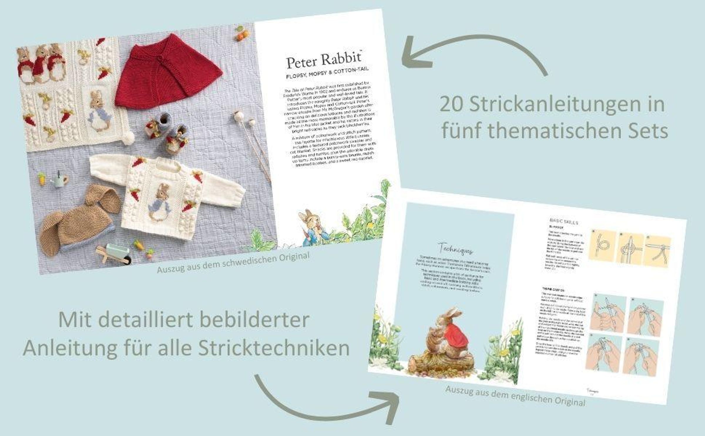 Von Peter-Rabbit-Pullover über Radieschen-Babysöckchen bis zum gemütlichen Kätzchen-Tom-Set: Dieses besondere Strickbuch vereint 20 bezaubernde Strickanleitungen zum Stricken für Babys von 0-12 Monaten. Inspiriert von den weltberühmten Figuren aus den Geschichten von Peter Hase (Peter Rabbit) und seinen Schwestern Mopsi, Flopsy und Cottontail entstehen zeitlose Lieblingsstücke mit literarischem Charme.