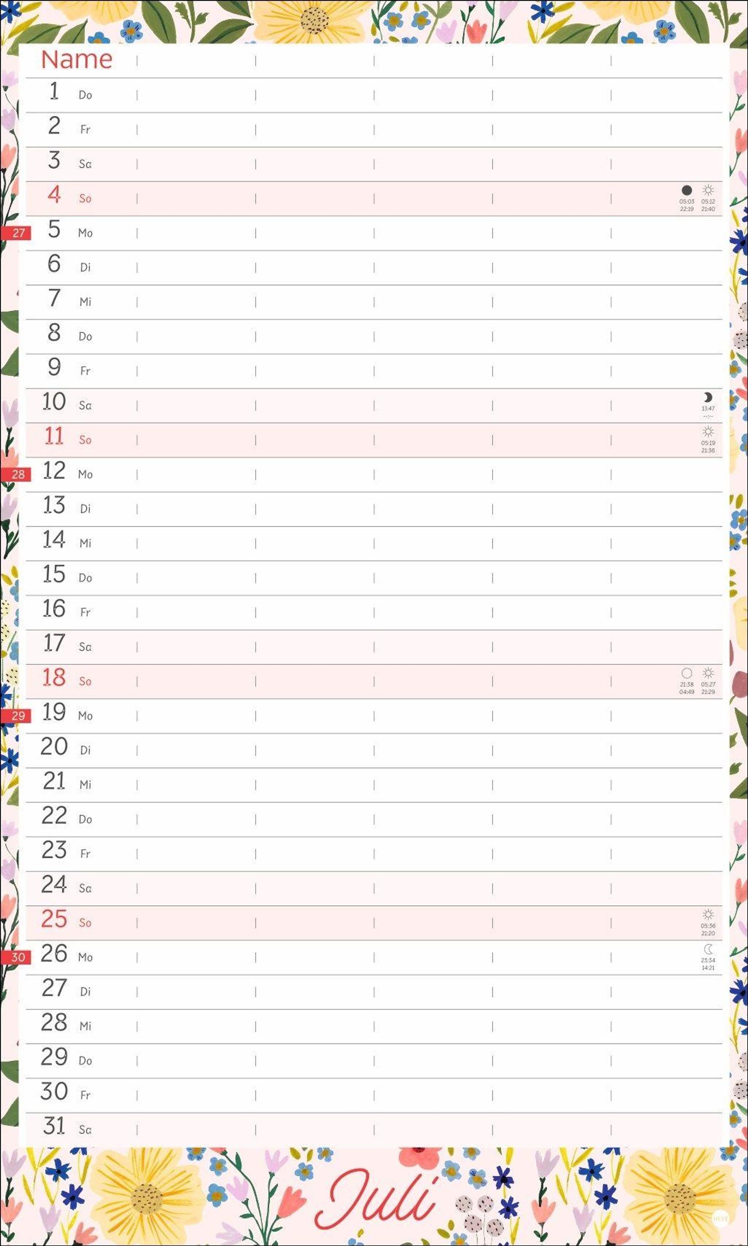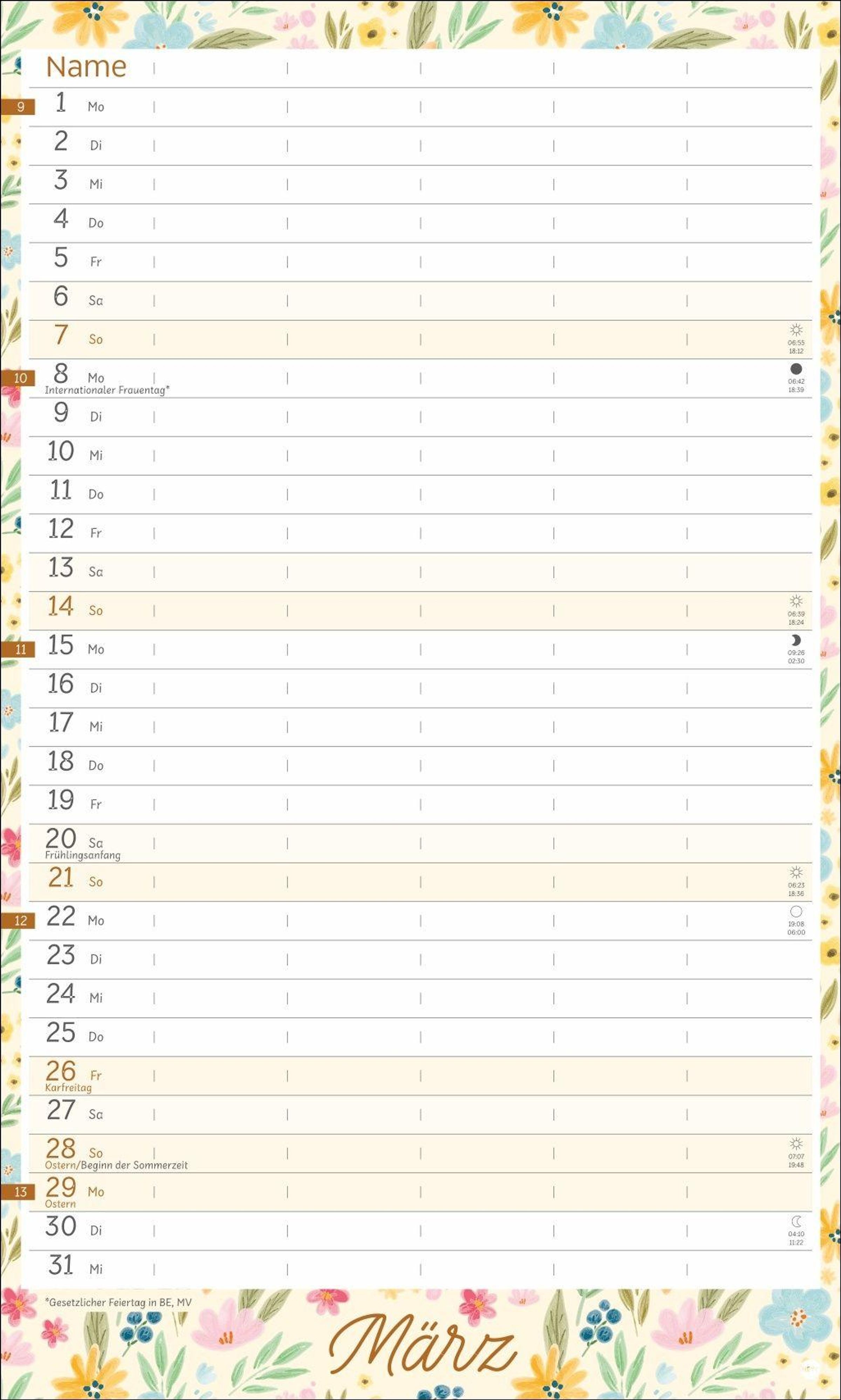 Deko-Familienplaner mit Tasche Flower Time 2027