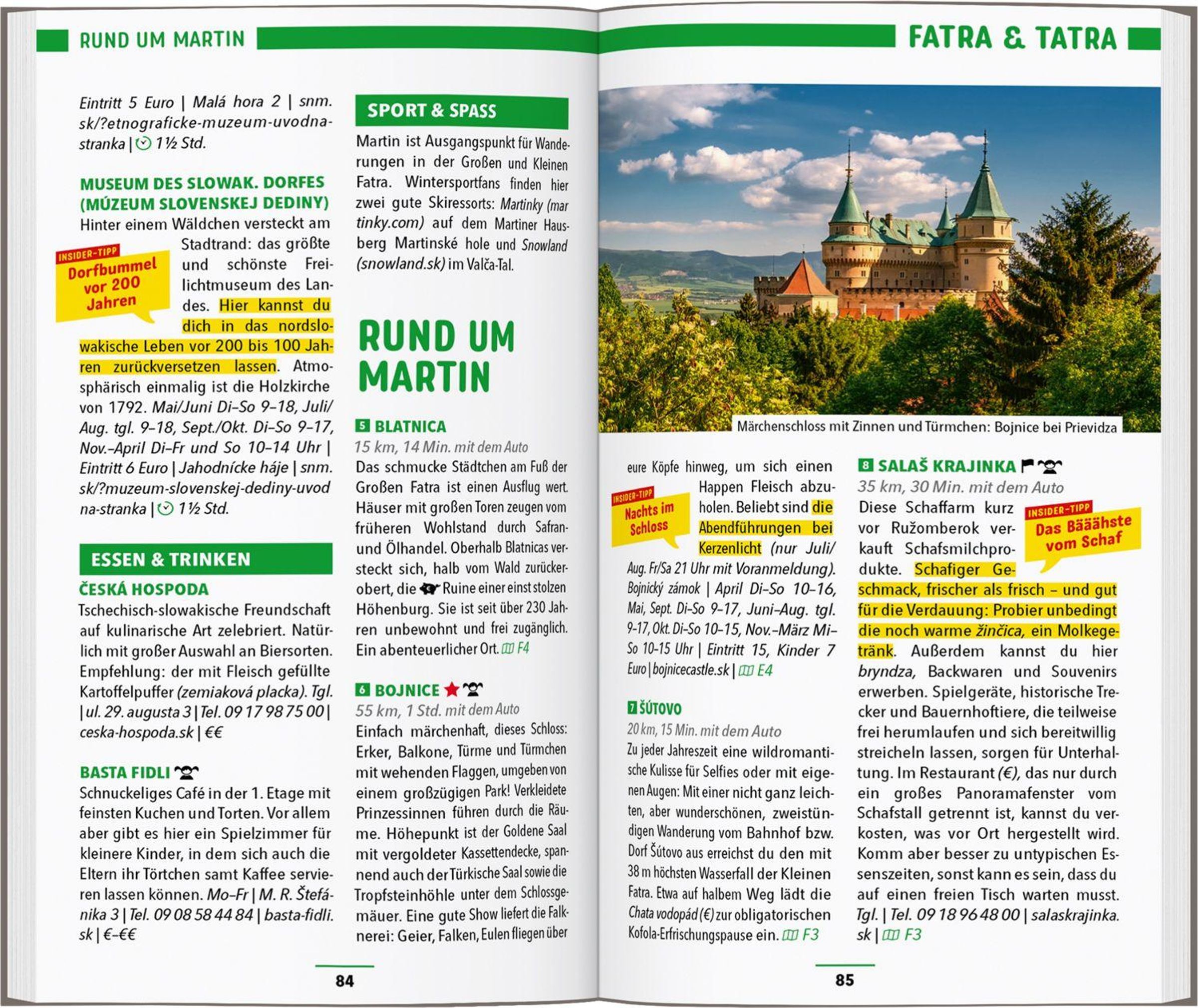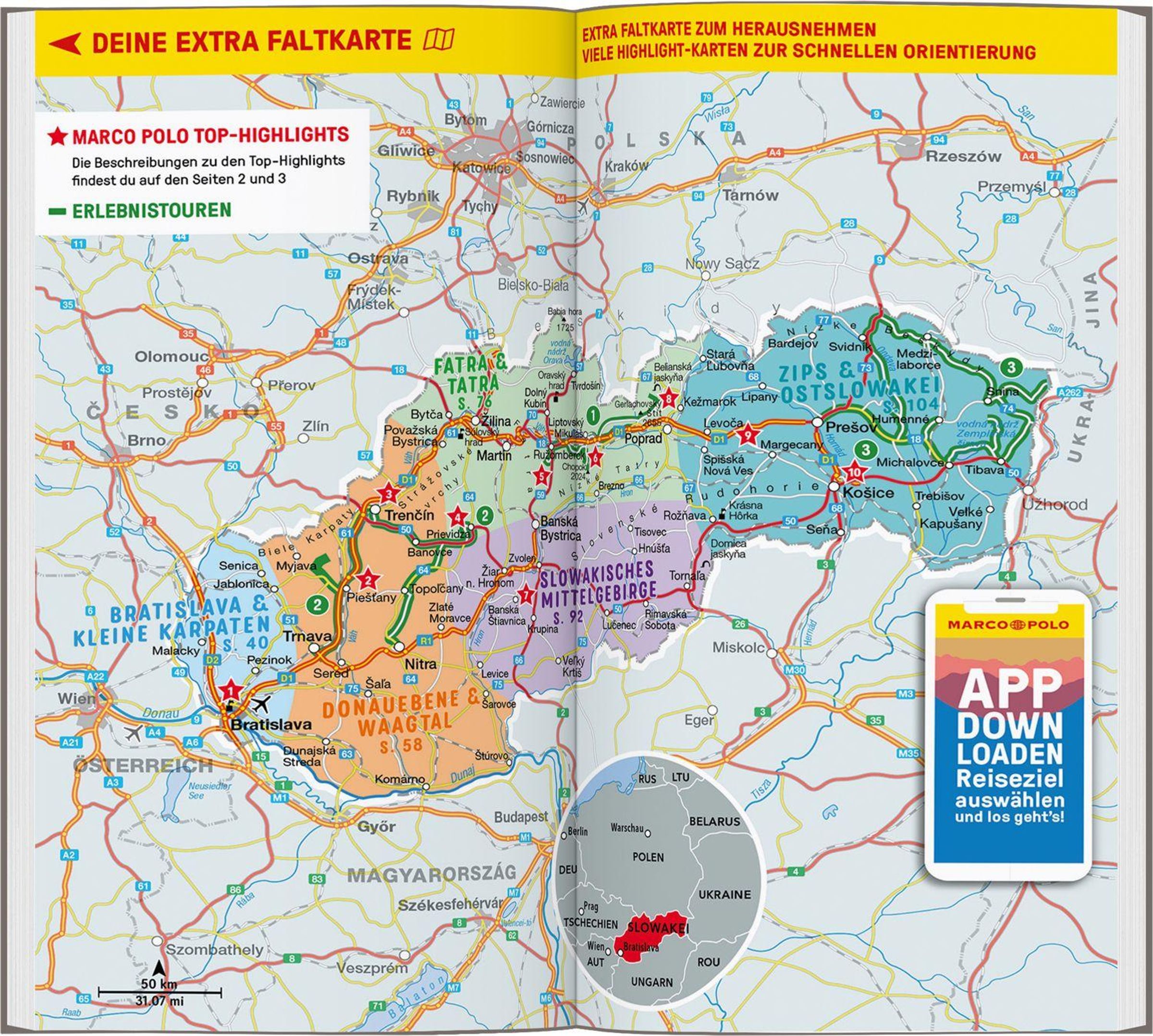 Mit dem MARCO POLO Reiseführer hast du alles im Gepäck, was du für deinen Urlaub in der Slowakei brauchst. Empfehlungen für Bücher, Blogs und Playlists bringen dich direkt in Urlaubsstimmung. Mit den praktischen Infos zu Anreise, Land und Leuten bist du bestens vorbereitet. Aus den vielen Tipps für Sightseeing-Highlights und Unternehmungen kannst du dir deine persönlichen Must-sees zusammenstellen. Schon vor der Reise zu Hause oder spontan unterwegs - du entscheidest! Ob Aktivurlaub oder Entspannung pur, mit deinem MARCO POLO Reiseführer wird jeder Tag in der Slowakei zum Erlebnis.