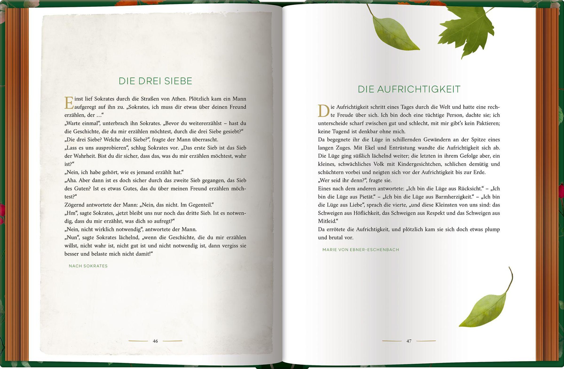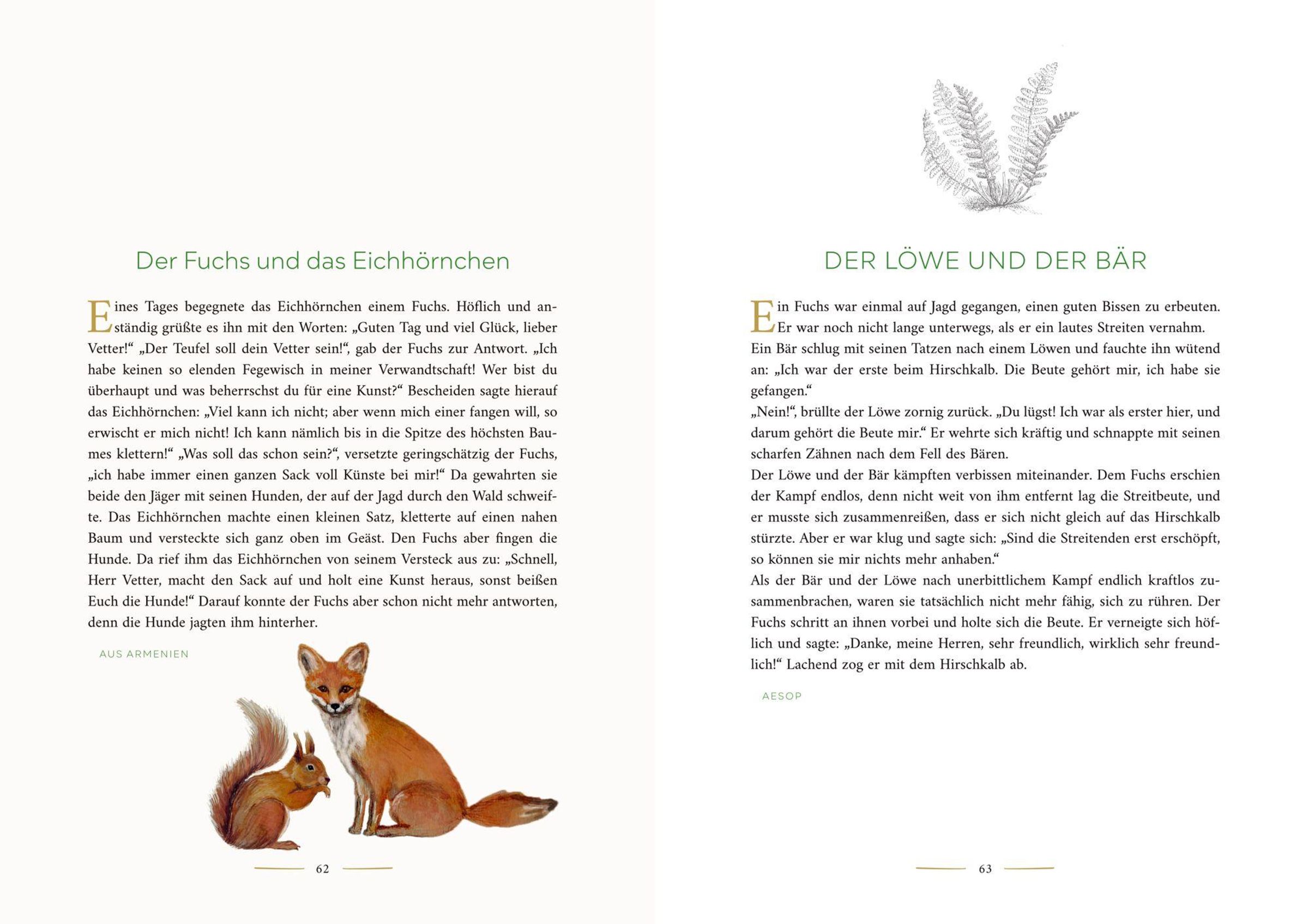 Mehr als 200 der bekanntesten und schönsten Fabeln aus aller Welt sind in dieser einmaligen Sammlung enthalten und thematisch geordnet. Ob aus dem Volksmund oder von berühmten Autoren und Erzählerinnen wie Aesop, Marie von Ebner-Eschenbach, Leonardo da Vinci u. v.m., die kurzen, allegorischen Tiergeschichten bringen in kunstvoll knapper Erzählform kluge Lebensregeln auf den Punkt und regen zum Nachdenken an. Bebildert mit zauberhaften Naturillustrationen, ist dieses edel ausgestattete Buch ein zeitloser Quell der Weisheit und ein klassisch schöner Schmuck für jedes Bücherregal - und ein hochwertiges Geschenk zu vielen Anlässen nicht nur für Buchliebhaber.