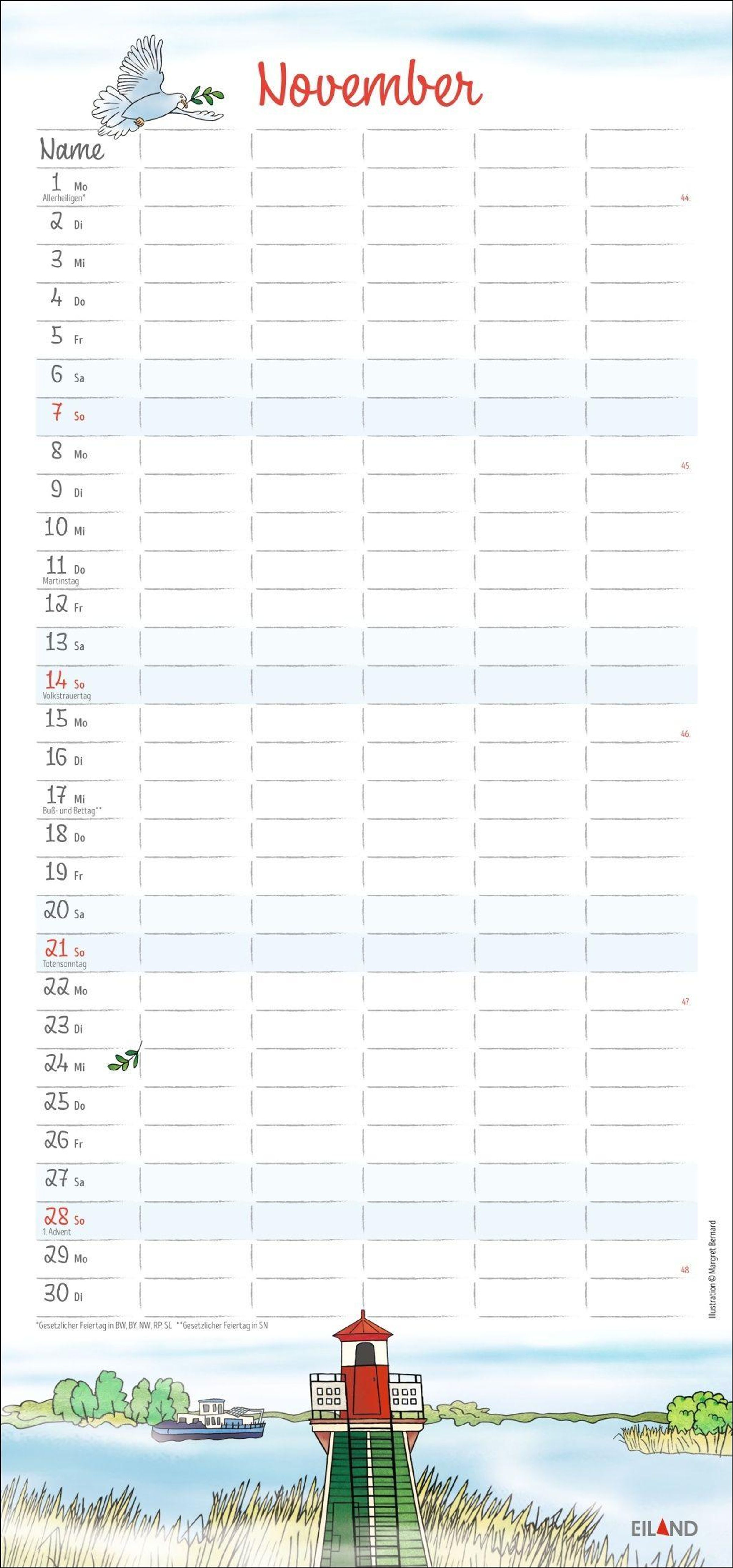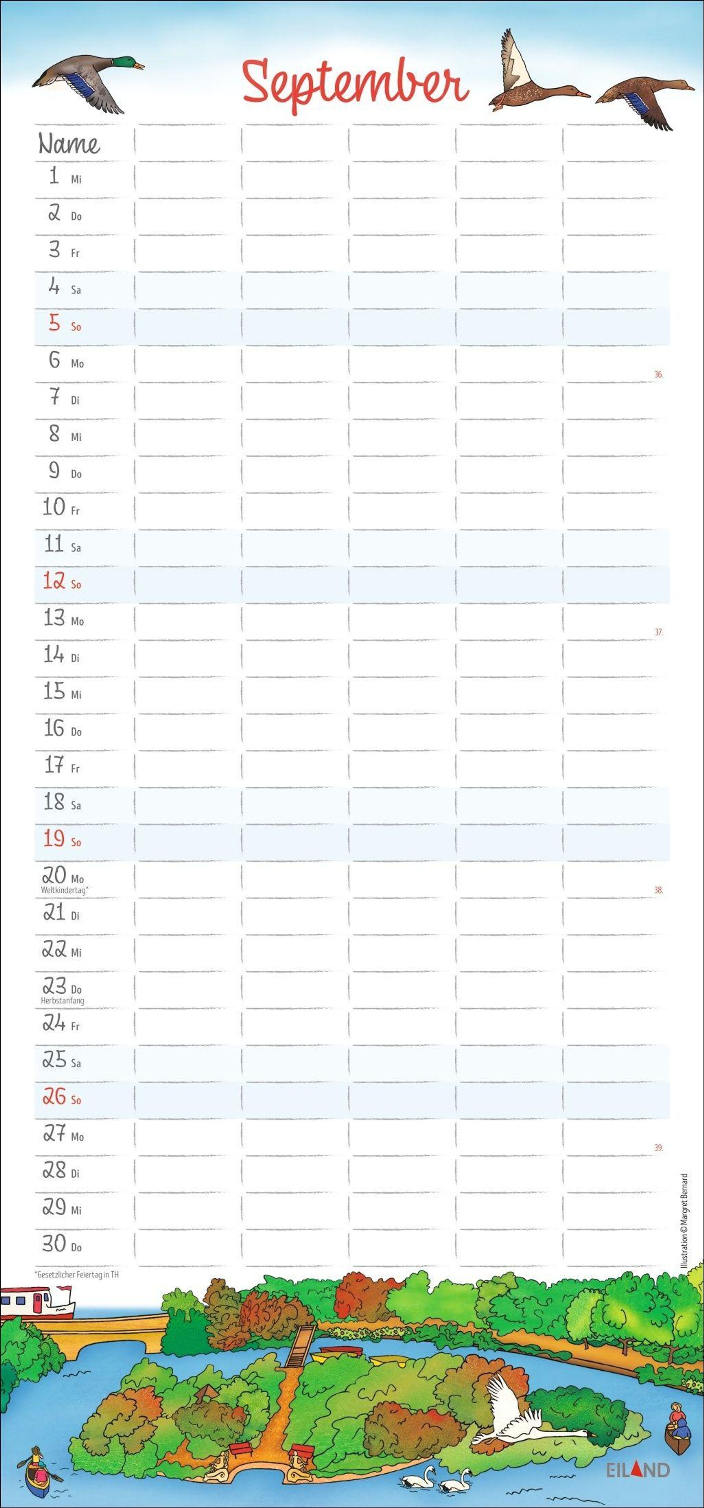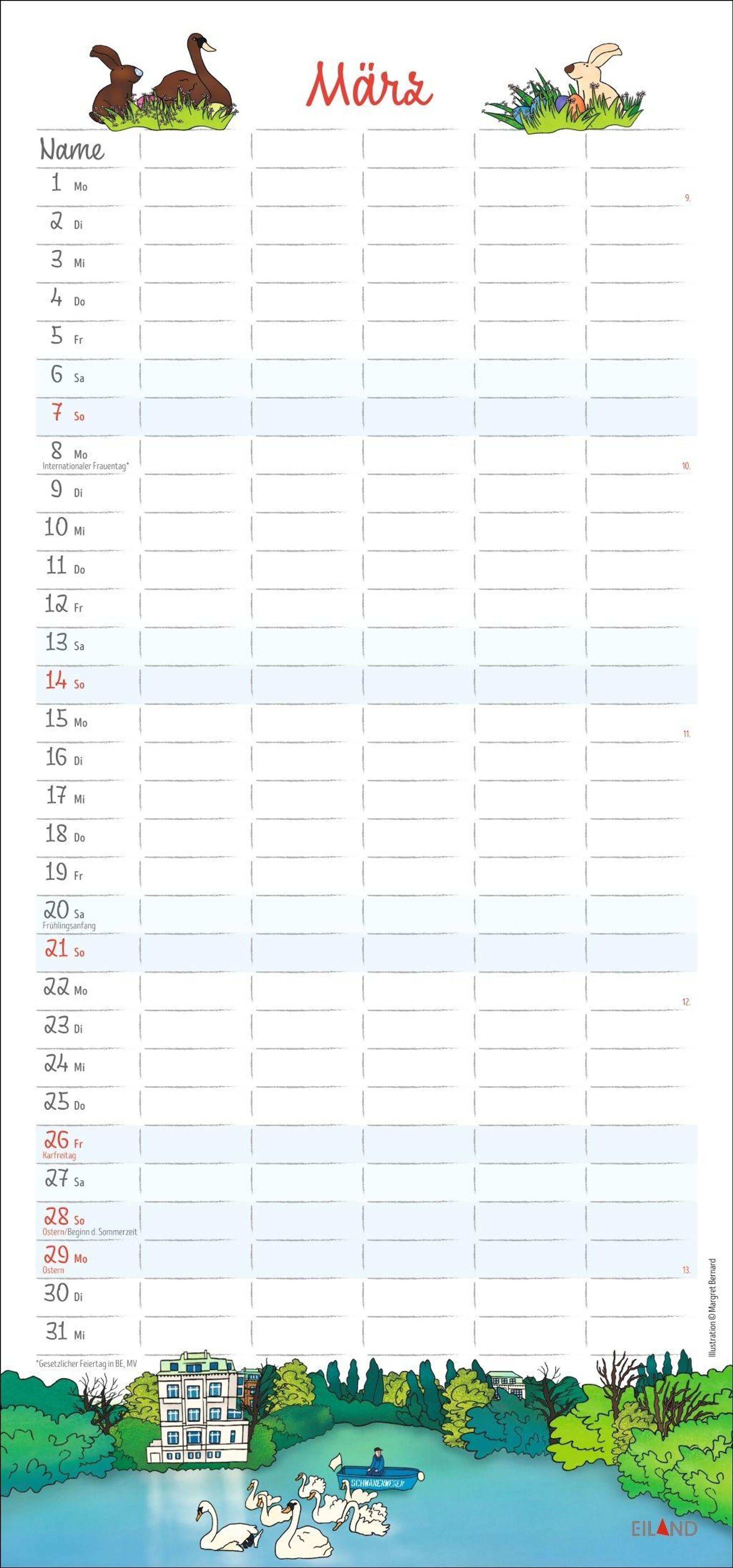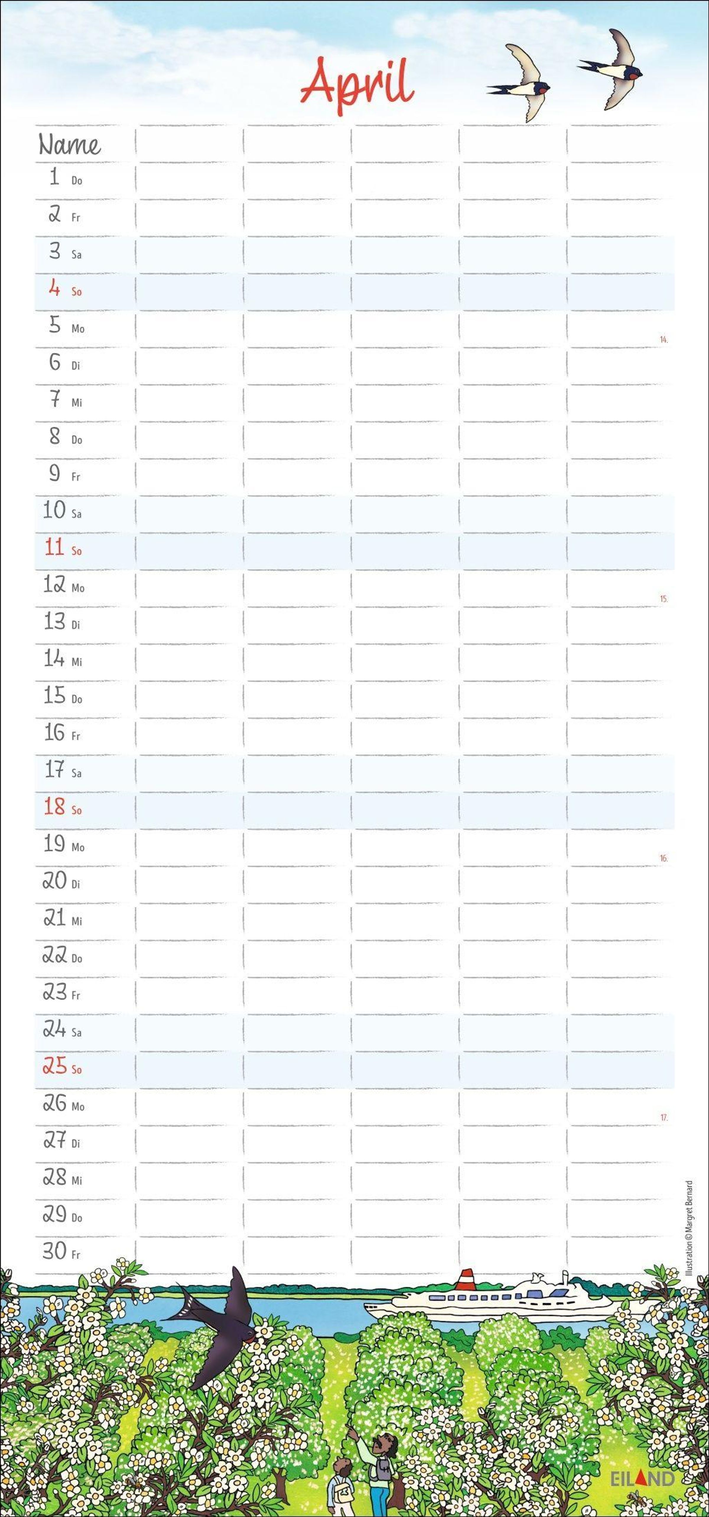 Organisationshilfe und Wandschmuck zugleich: Der Familienkalender mit 5 Spalten im Format 21 x 45 cm