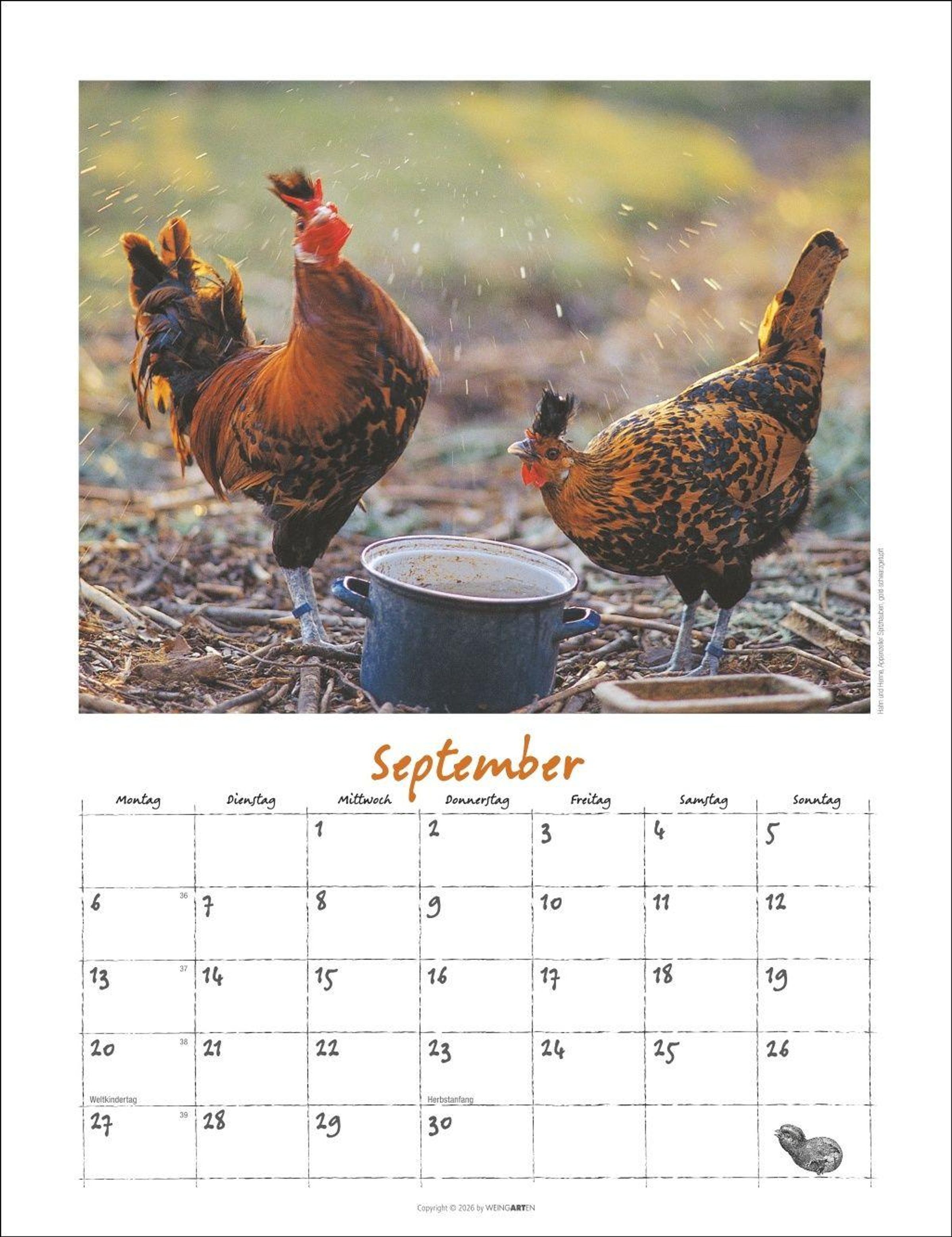 - Wandkalender 2027 mit Hühnerfotos des bekannten Naturfotografen Wolf-Dietmar Unterweger. Tier-Kalender 2027 mit idyllischem Bauernhofflair.