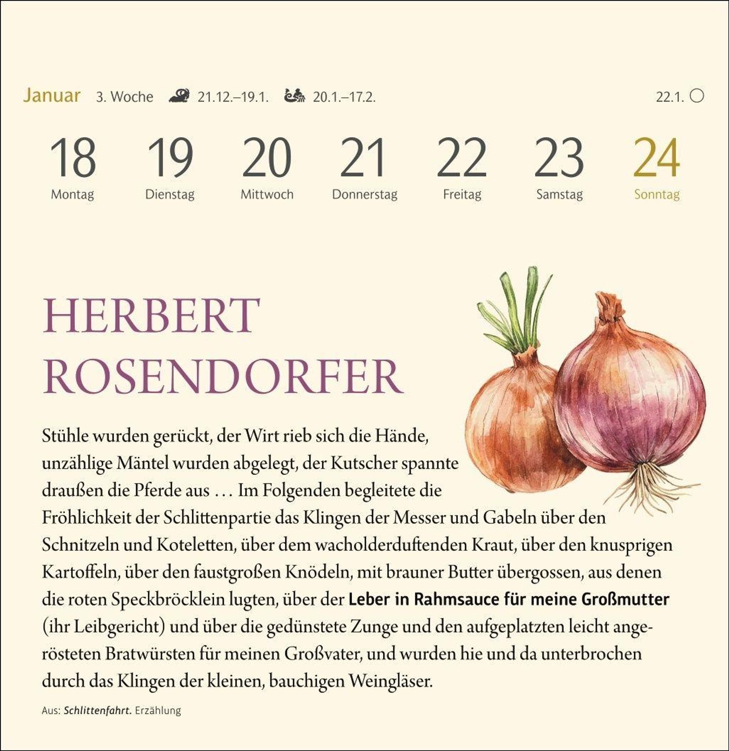 Schmackhafte Literatur: Woche für Woche ein Auszug aus dem Werk berühmter Autor: innen mit Bezug zu Speisen, Gerichten und Spezialitäten mit passender Rezept-Karte zum Nachkochen und Sammeln