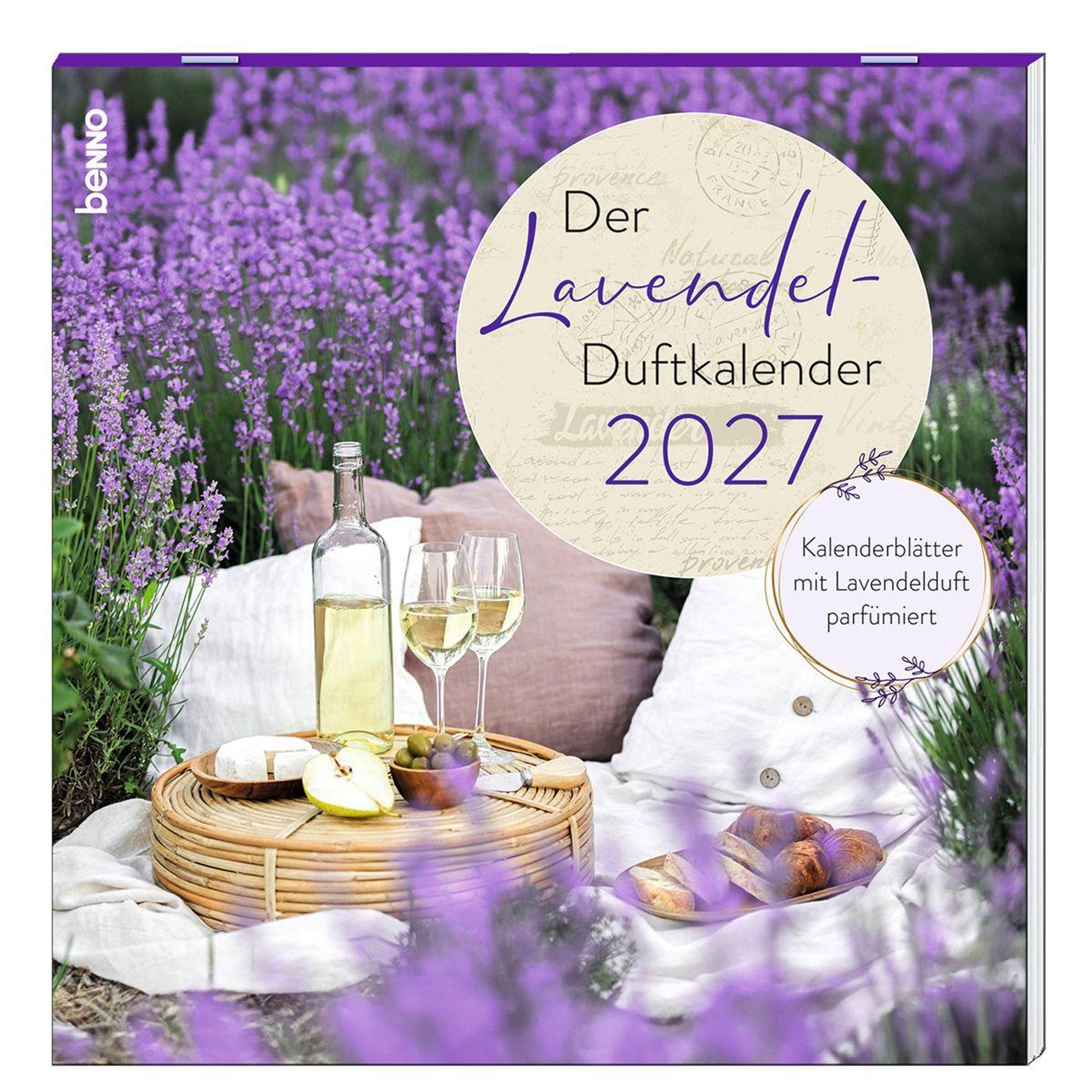 "Der Lavendel-Duftkalender 2027. Kalenderblätter mit Lavendelduft parfümiert." Ein Picknick in einem Lavendelfeld., Kalender