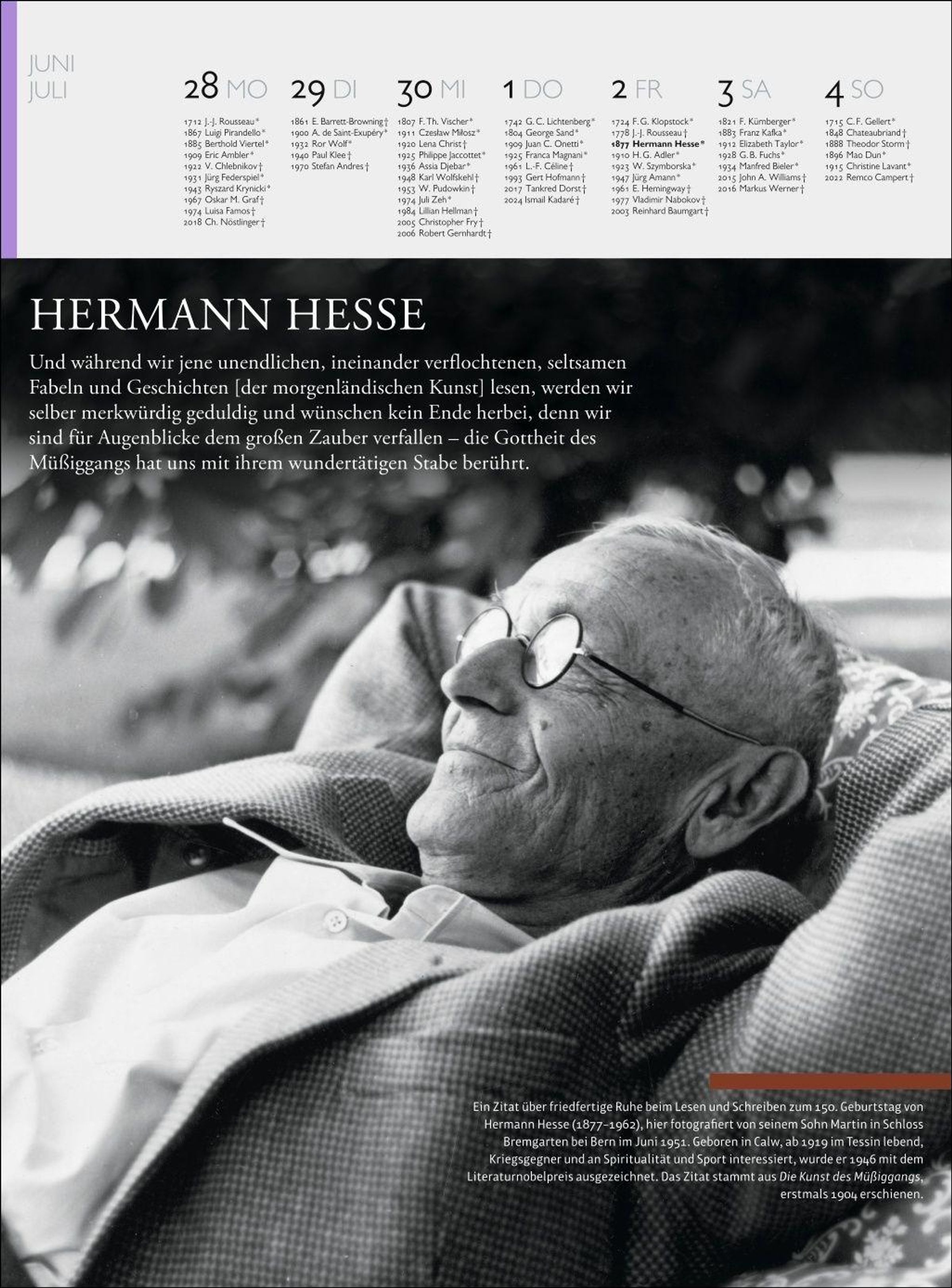 „Der Literatur Kalender 2027: Momente des Friedens | Texte und Bilder aus der Weltliteratur“. Ein Mann liegt entspannt., Kalender