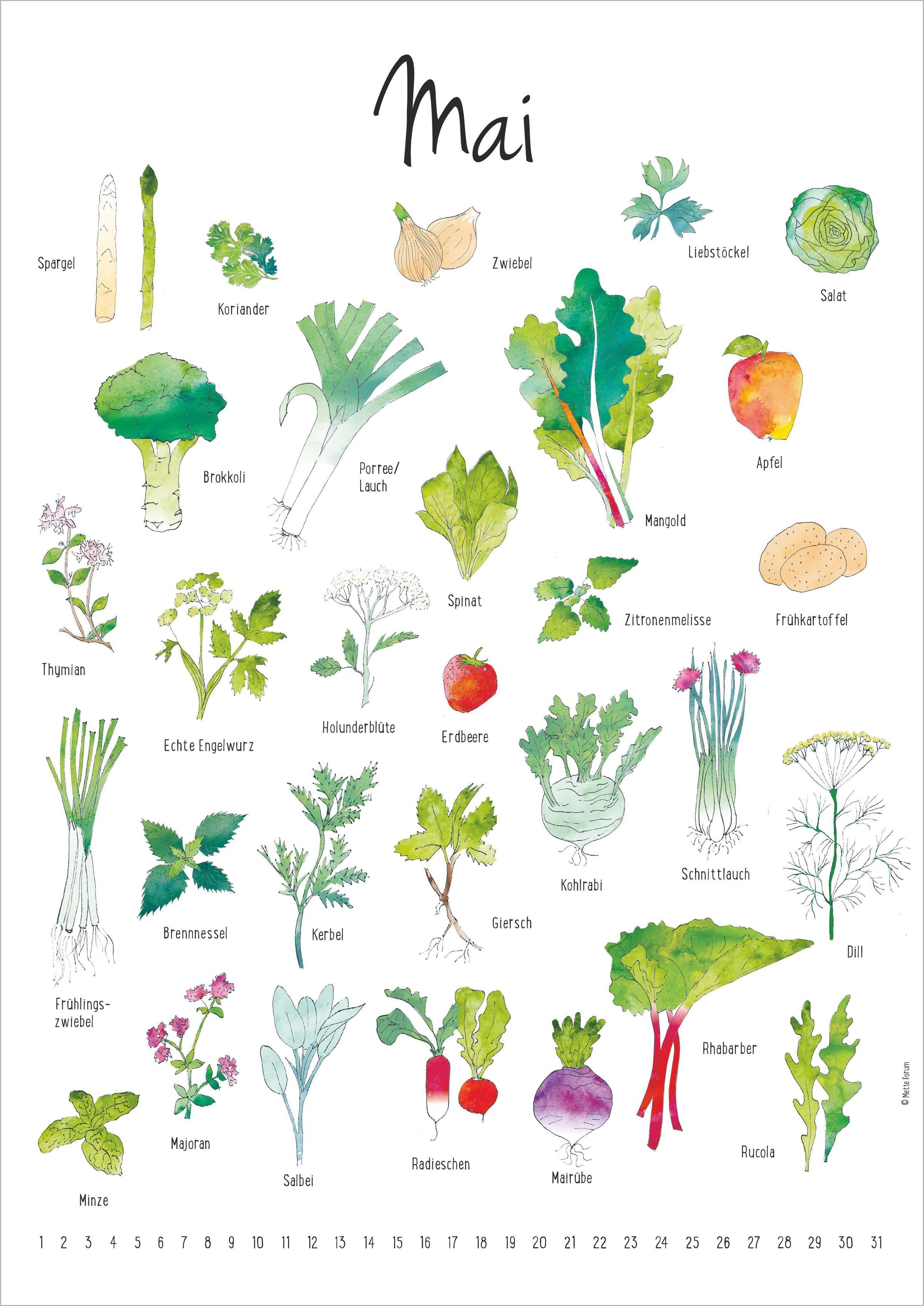 Mit Der Saisonkalender von LandLust wird saisonaler Genuss ganz einfach: Monat für Monat zeigen liebevoll gestaltete Illustrationen, welche Obst-, Gemüse- und Kräutersorten gerade Saison haben. Inspiriert vom dänischen Original der Grafikdesignerin Mette Forum lädt der Kalender dazu ein, bewusster einzukaufen, regionaler zu kochen und die Natur im Jahreslauf neu zu entdecken. Als immerwährender Wandkalender ist er unabhängig vom Jahr und kann jederzeit genutzt werden.