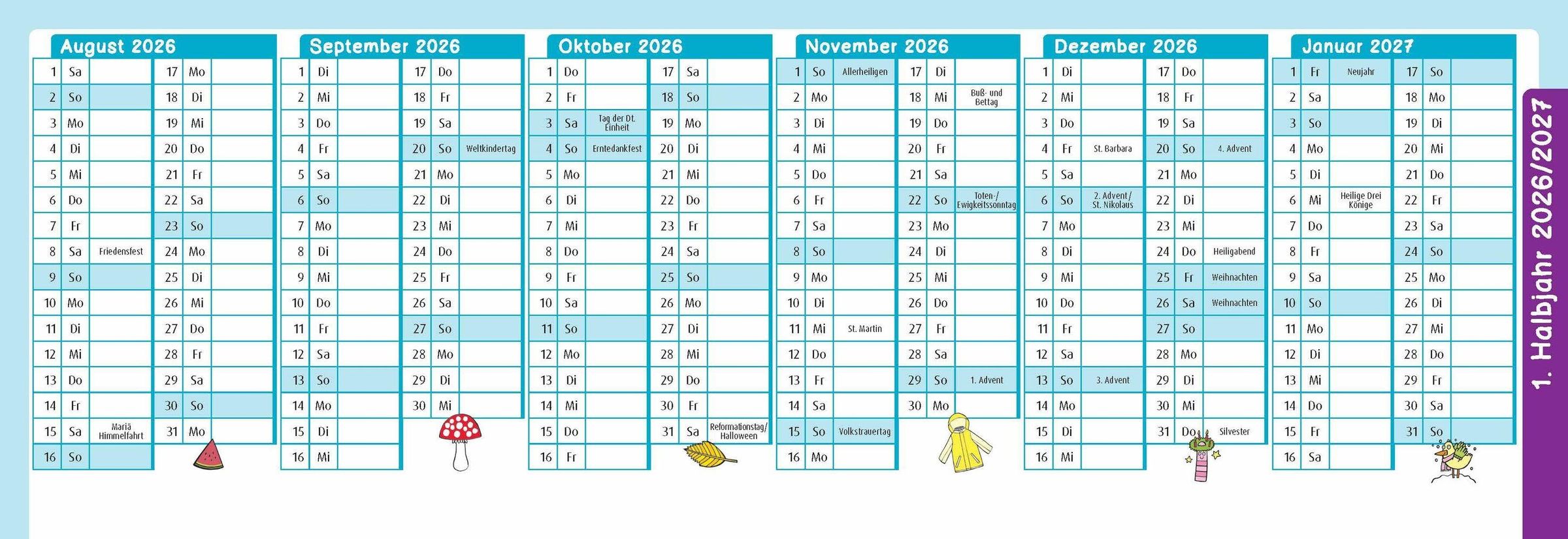 Der Wochen-Tischkalender für das Schuljahr 2026/2027