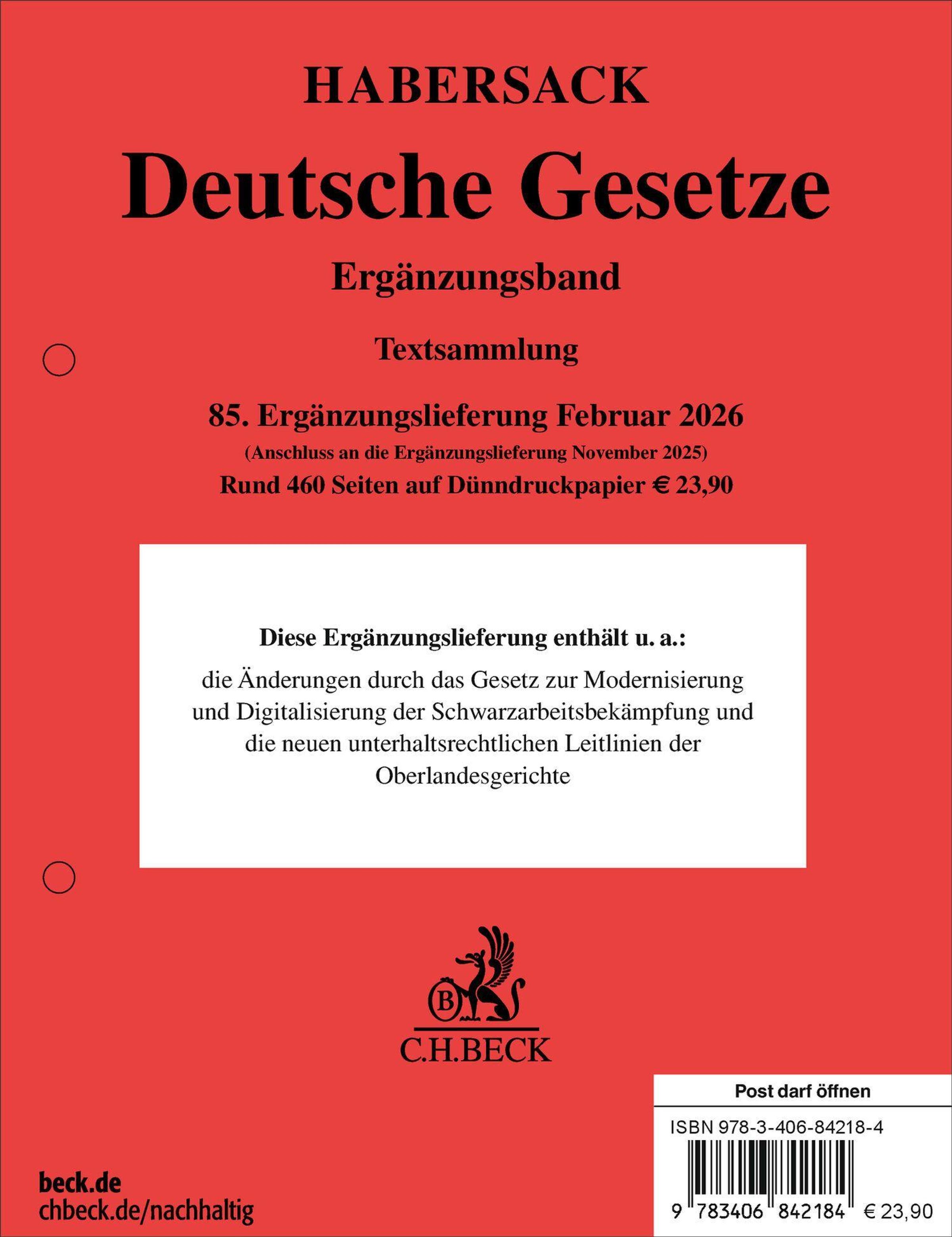 Deutsche Gesetze Ergänzungsband 85. Ergänzungslieferung