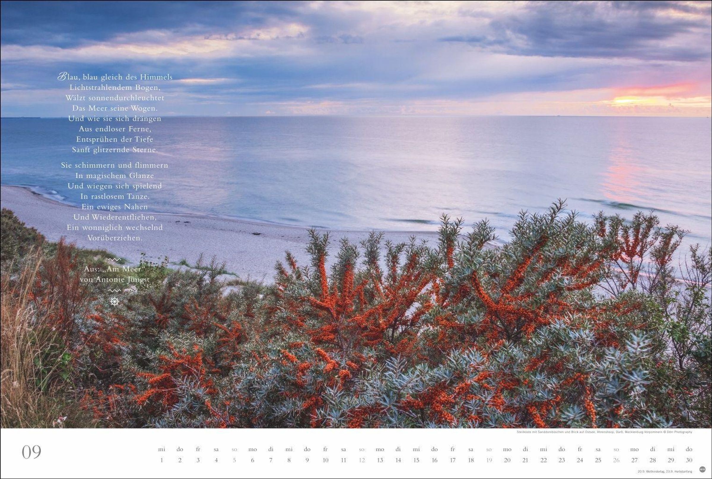 Momente der Ruhe und Weite: Dieser Wandkalender im Großformat verbindet die zeitlose Schönheit des Meeres mit den Worten deutscher Literaten